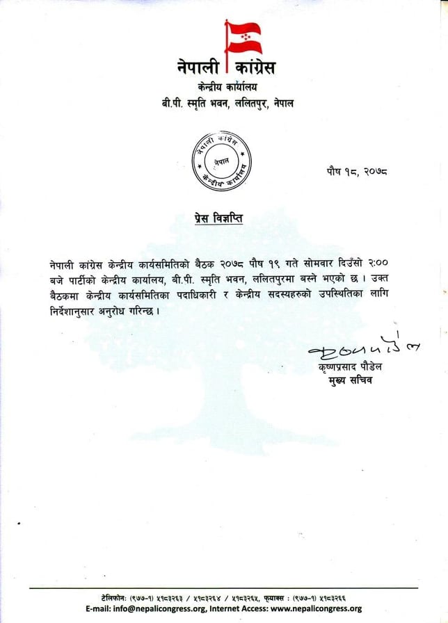 कांग्रेसले केन्द्रीय कार्यसमितिको बैठक बोलायो