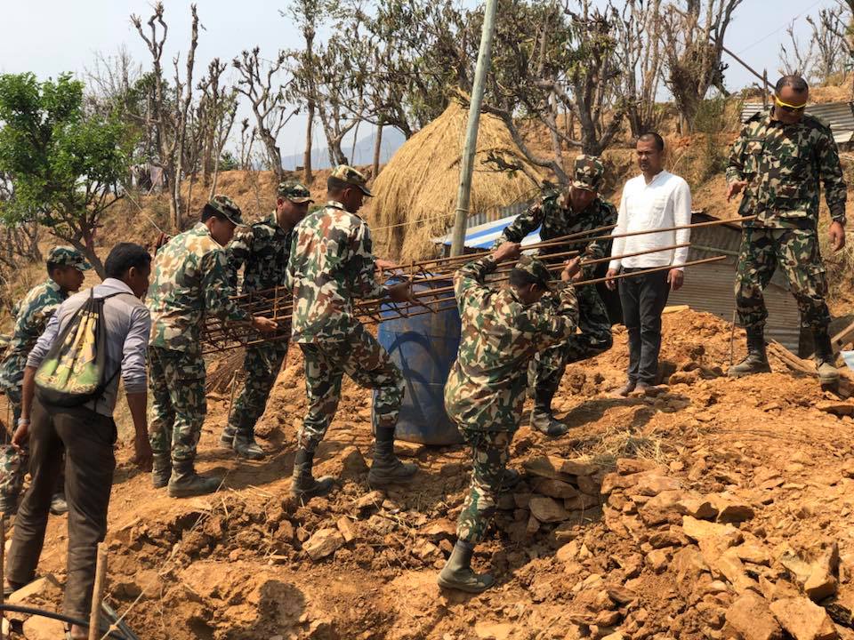 अपांगता भएका ३० वर्षकी जेठी छोरी लीला, १९ वर्षकी कान्छी छोरी शिला र १६ वर्षका छोरा राजीव श्रेष्ठ हिँडडुल गर्न र राम्रोसँग बोल्न सक्दैनन् । “गोरखामा रहेको नेपाली सेनाको श्री रणसिह दल गणबाट श्रमदान गर्नका लागि पहिलाे चरणामा १२ जनाका दरले १५ दिनसम्म धनबहादुरको घर निर्माण गर्न नेपाली सेनाको टोली अाउनुहुने छ” उनले भने । घर बनाऊने कार्य अगी बढि सकेकाे छ, ९ वटा जग खनि सकेको र ९ वटा नै पिल्लर हाल्ने काम भोलि बाट सुरू हुने श्रेष्ठले भने । नेपाली सेनाकाे १२ जनाको टोलीले सो घर निमाणमा श्रमदान गर्ने भएका हुन् ।