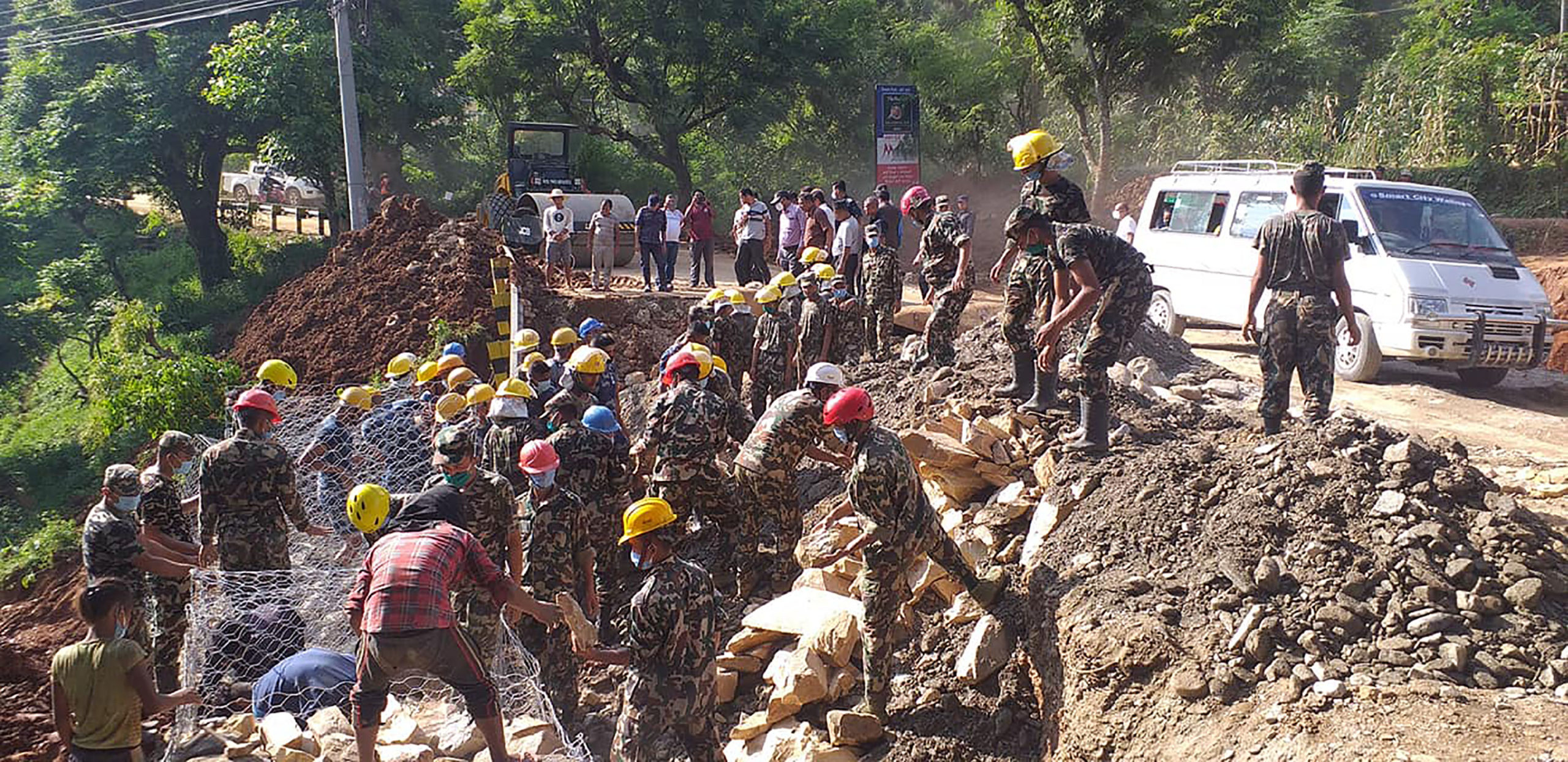 भासिएको सडक मर्मत गर्दै नेपाली सेना
