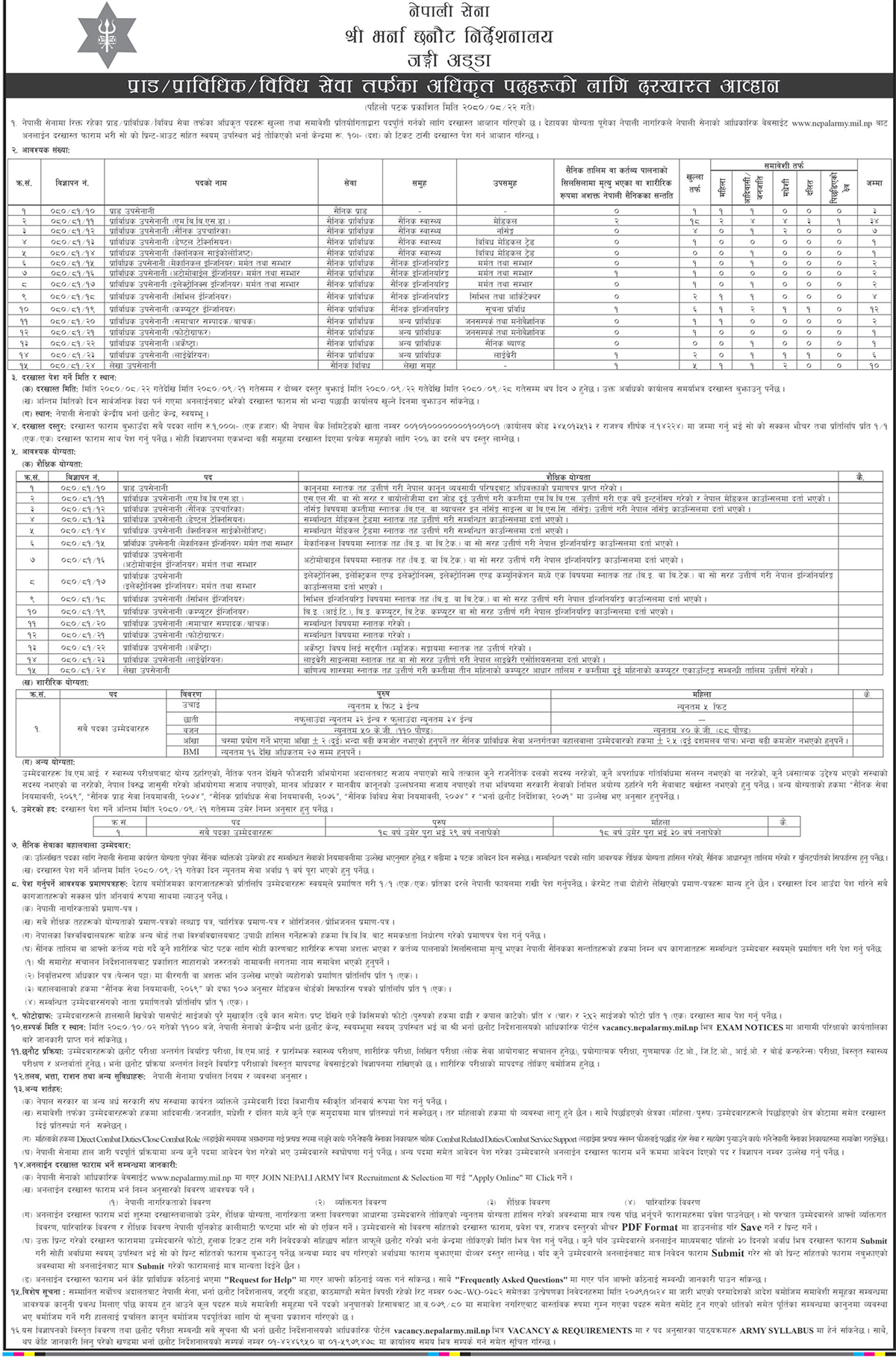 भर्ना छनोट निर्देशनालय जंगी अड्डाले प्राड-प्राविधिक-विविध सेवा तर्फका अधिकृत पदहरुमा खुला तथा समावेशी प्रतियोगिताबाट पदपूर्ति गर्न दरखास्त आह्वान गरेको हो ।