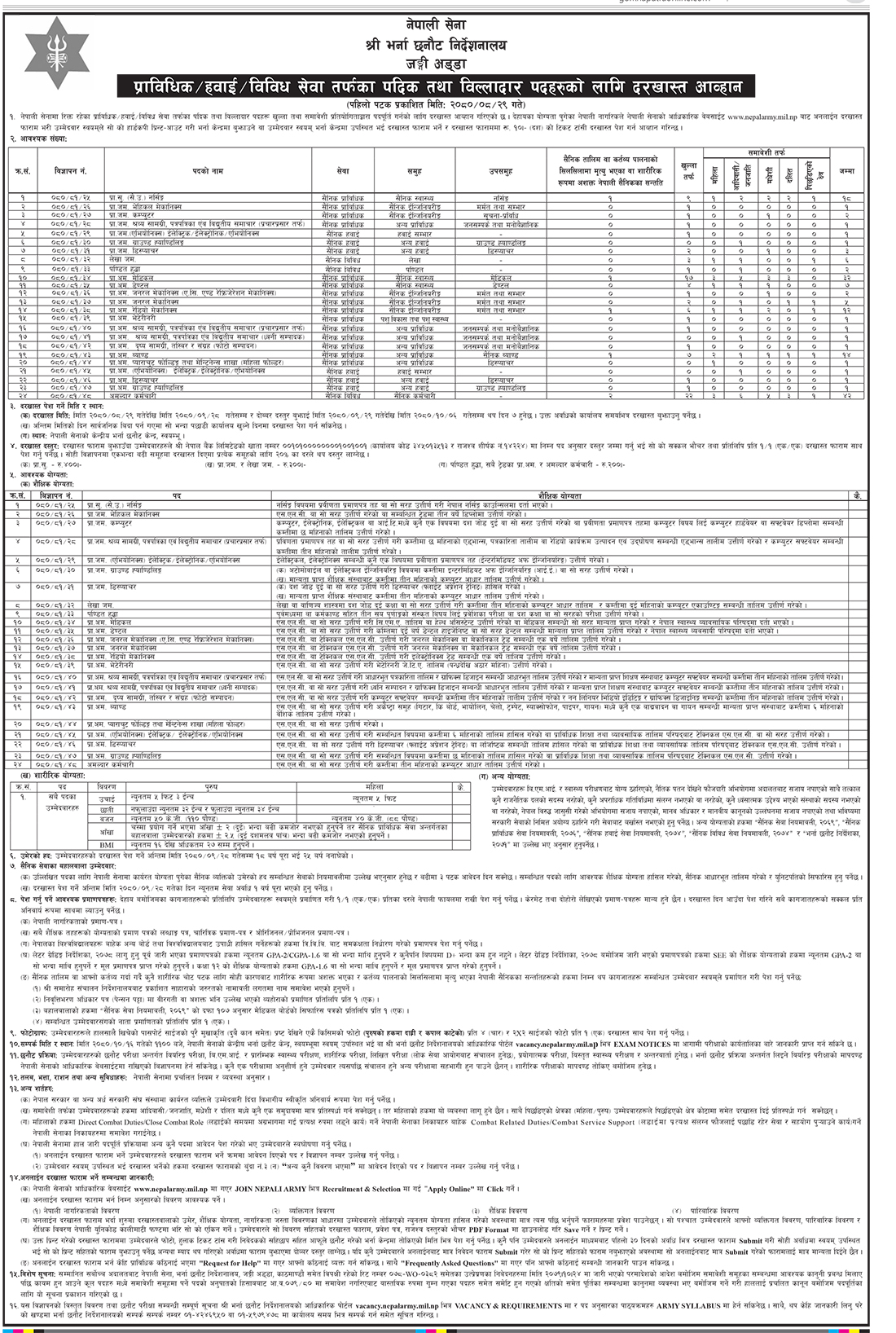 काठमाण्डु – नेपाली सेनाले विभिन्न पदहरूका लागि दरखास्त आह्वान गरेको छ।