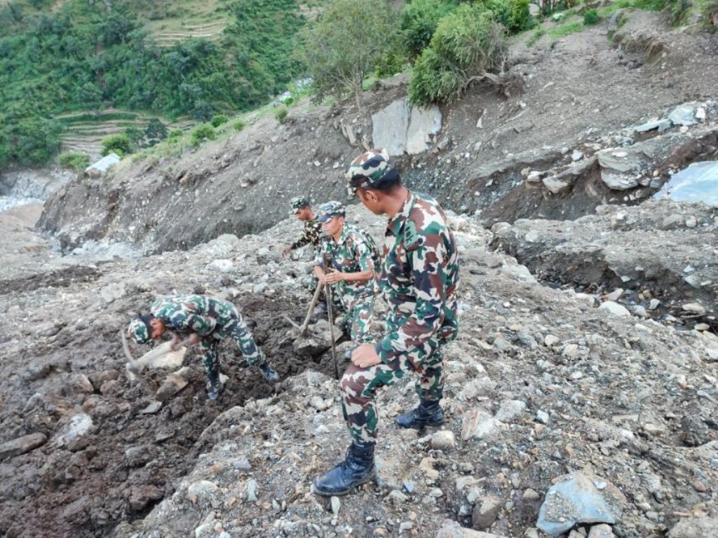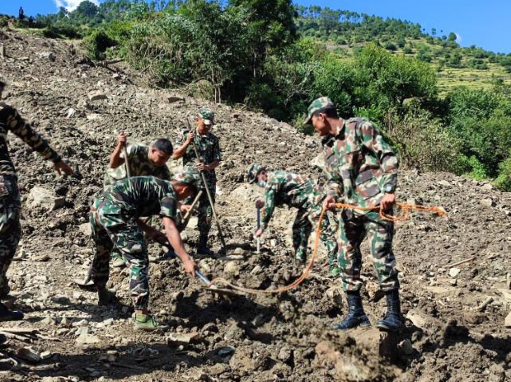 बाढीपहिरो प्रभावित देशका विभिन्न क्षेत्रहरुमा बेपत्ता भएका व्यक्तिहरुको खोजी कार्यलाई जारी राख्नुको साथै अवरुद्ध भएका मुख्य तथा सहायक सडकहरु सुचारु गर्नको लागि सहयोग गरिरहेको र विभिन्न नदीको तटिय क्षेत्रमा तटबन्दको कार्यलाई प्राथमिकताका साथ निरन्तरता दिदैँ आइरहेको छ।
