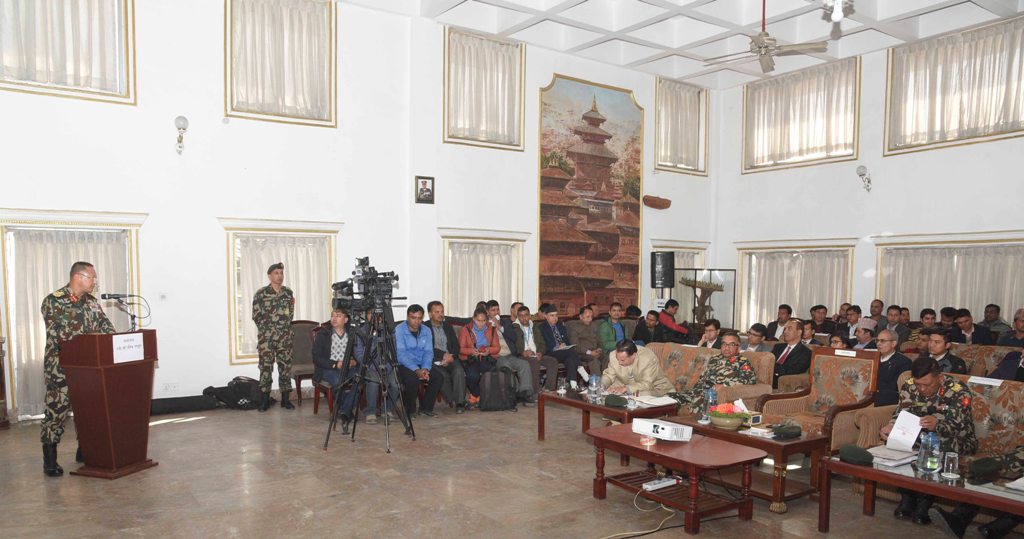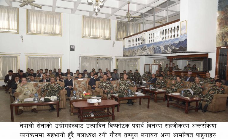 नेपाली सेनाको सुनाचरी ईमल्सन प्लाण्ट र स्वयम्भू वारुदखानाबाट उत्पादित विष्फोटक पदार्थहरुको गुणस्तर, उत्पादन क्षमता र आपूर्तिमा सुनिश्चितता तथा वितरण प्रक्रियालाई थप सरल, सहज र व्यवहारिक बनाउने प्रक्रिया सम्बन्धमा नेपाली सेनाका बिभिन्न सम्बद्द विभागहरुबाट जानकारी गराउन र बिभिन्न प्रयोगकर्ता सरोकारवाला निकायहरुको तर्फबाट बिष्फोटक पदार्थ प्राप्तीमा विविध पक्षमा भोग्न परिरहेका समस्या तथा कठिनाईहरु, गुनासाहरु तथा राय सुझावहरु राख्नको लागि छलफल भएको सेनाद्वारा जारी विज्ञप्तिमा भनिएको छ ।