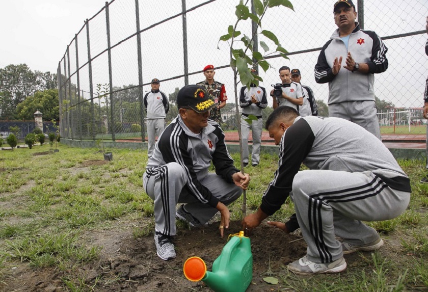 प्रधानसेनापति थापाको उपस्थितिमा जंगी अड्डा हाताभित्र २ सय ५० वटा विभिन्न जातका फलफूलका बिरुवा रोपिएको सेनाको जनसम्पर्क तथा सूचना निर्देशनालय जंगी अड्डाले जनाएको छ ।