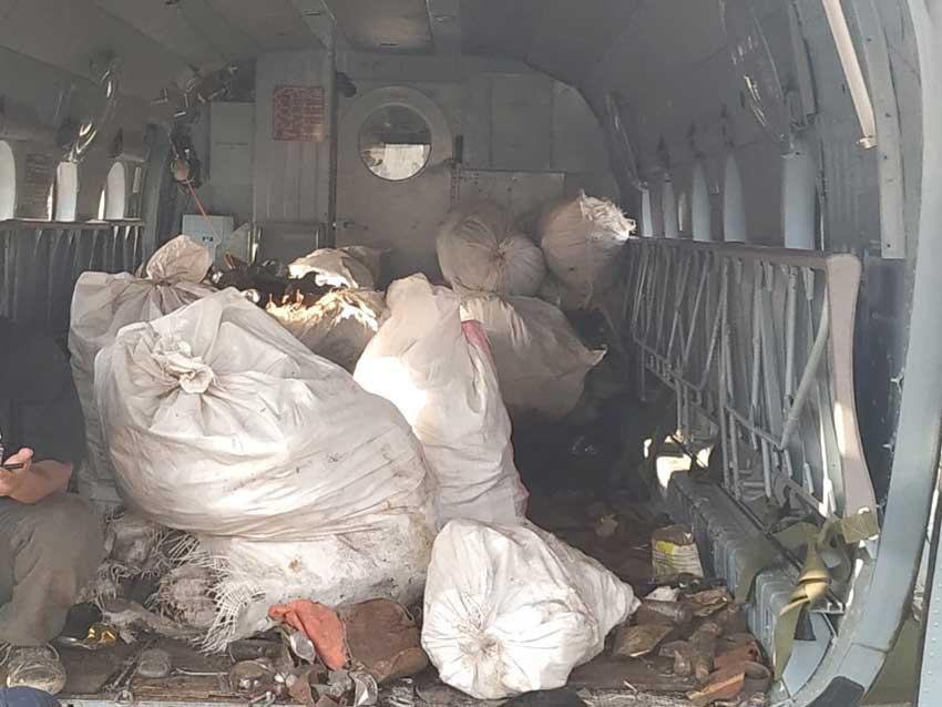 सर्वोच्च शिखर सगरमाथा क्षेत्रमा थालिएको सफाइ अभियानका क्रममा पहिलो चरण अन्तर्गत संकलित फोहोर काठमाडौं ल्याइएको छ । यस वर्षको सफाइ अभियानका क्रममा खुम्बु क्षेत्रबाट संकलन भएको फोहोरलाई पहिलो चरण अन्तर्गत नेपाली सेनाको हेलिकोप्टरले काठमाडौं ल्याएको हो ।