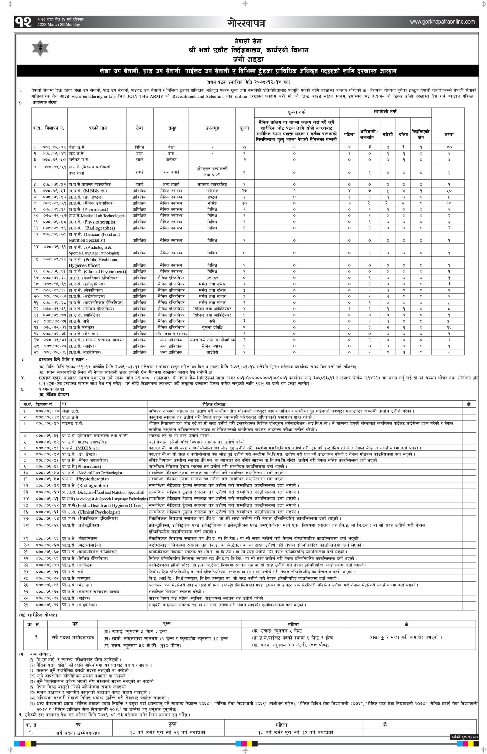 पुरुषका हकमा १८ वर्ष पूरा भई २९ वर्ष ननाघेका र महिलाकाे हकमा ३० वर्ष ननाघेका उम्मेदवारले १३ वैशाखसम्म दरखास्त दिन सक्नेछन् ।