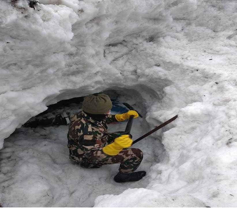 साथै खोजी कार्यमा खट्टिएको नेपाली सेनाको टोलीले हराईरहेका बाँकी एक-एक जना नेपाली र कोरियन नागरिकको हिंउ भित्र पुरिएको सम्भावित स्थानमा खोजी कार्य जारी राखेको छ ।