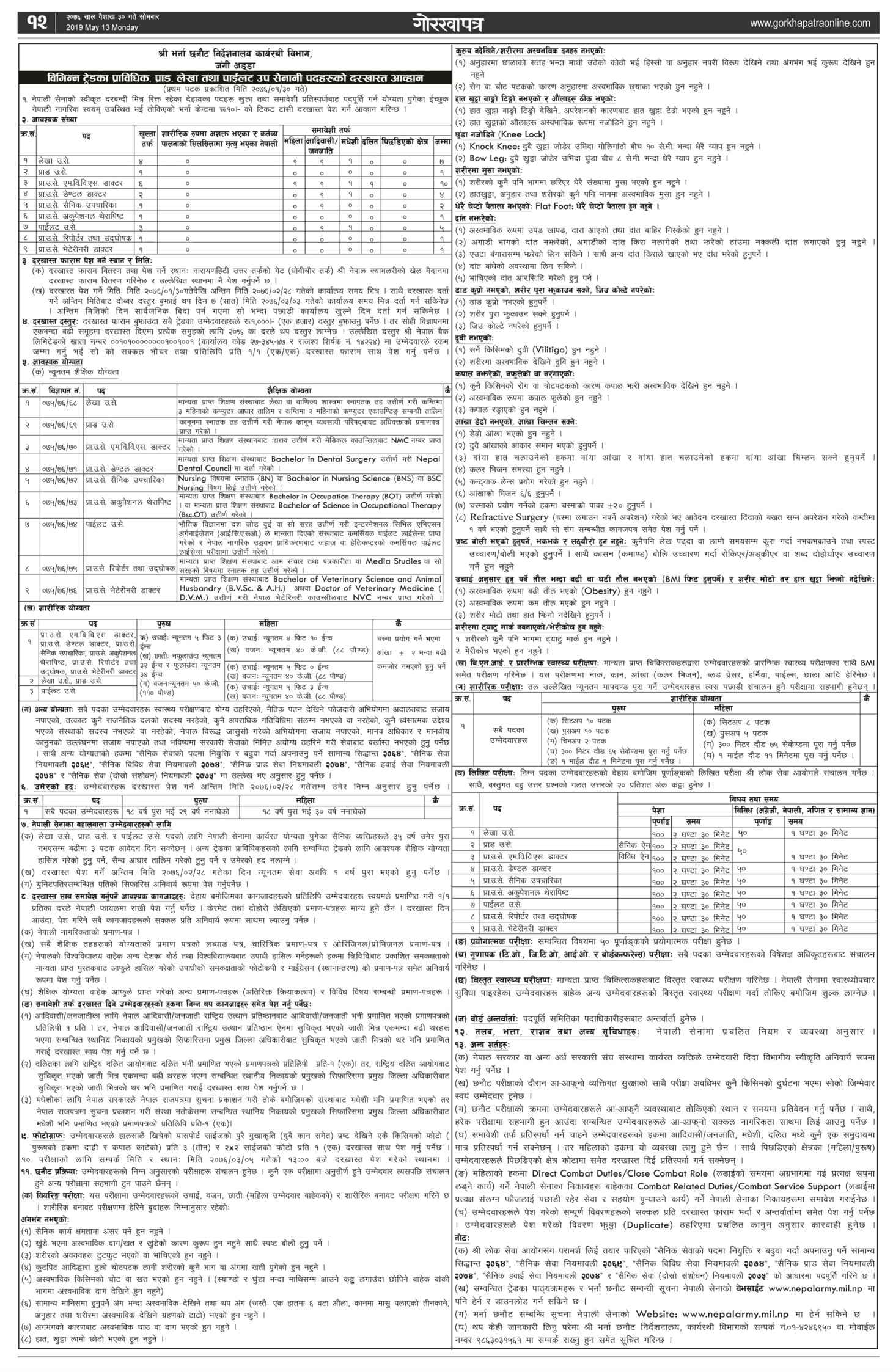 नेपाली सेनाको भर्ना छनोट निर्देशनालय कार्यरथी विभाग, जंगी अड्डा द्वारा लेखाको उपसेनानीका लागि ७ जना, एमबिबिएस डाक्टर १० जना, उपसेनानी पाइलट पाँच जना, रिपोर्टर तथा उद्घोषक उपसेनानी १ जनाको दरखास्त माग गरेको छ।