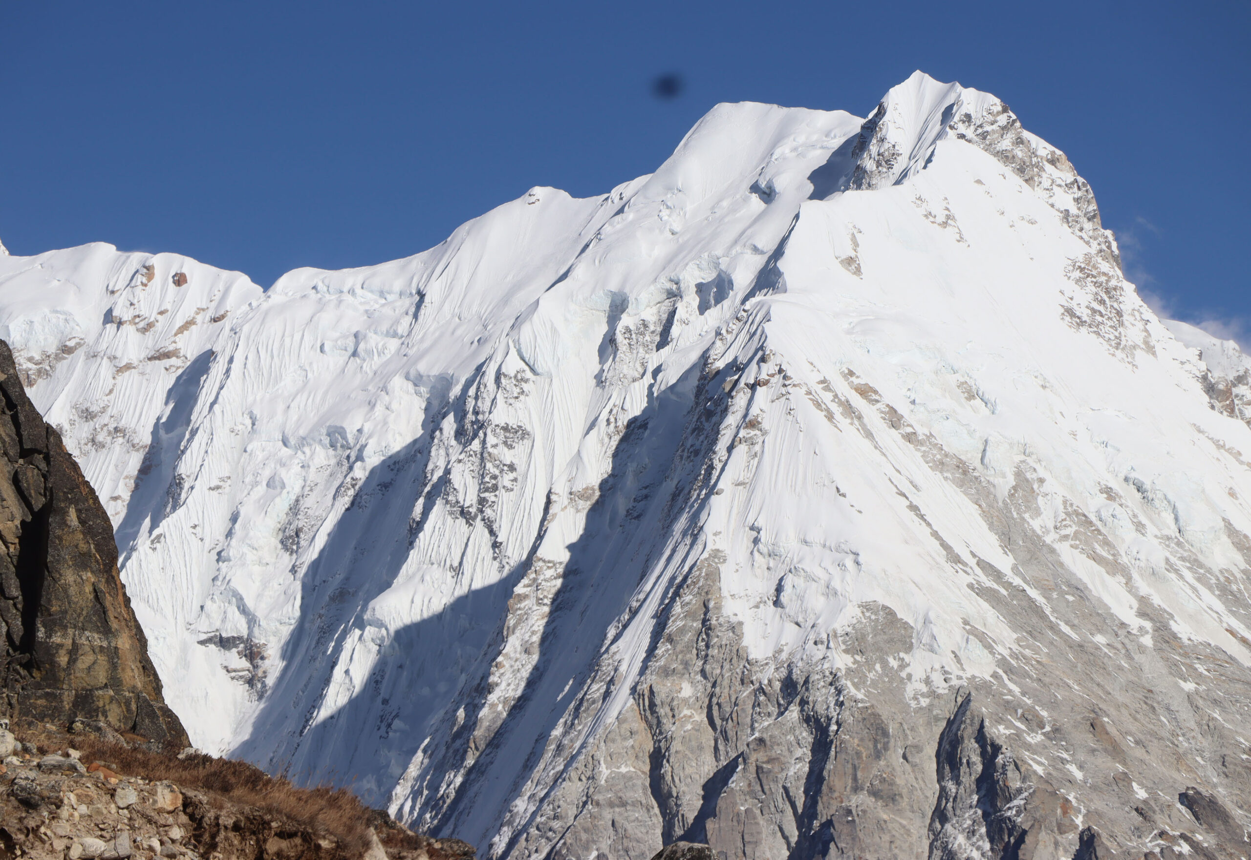ताप्लेजुङको फक्ताङलुङ गाउँपालिका-६ लोनाक क्षेत्रबाट देखिएको कञ्चनजङ्घा हिमालको नजिकै रहेको नेपालपिक हिमालको दृश्य ।