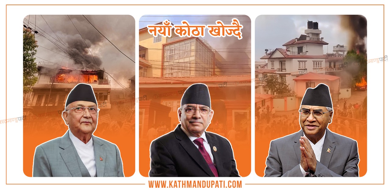 काठमाण्डु – जेनजी आन्दोलनमा घर जलेपछि ३ दलका शीर्ष नेताहरू घरवारविहीन भएका छन् ।