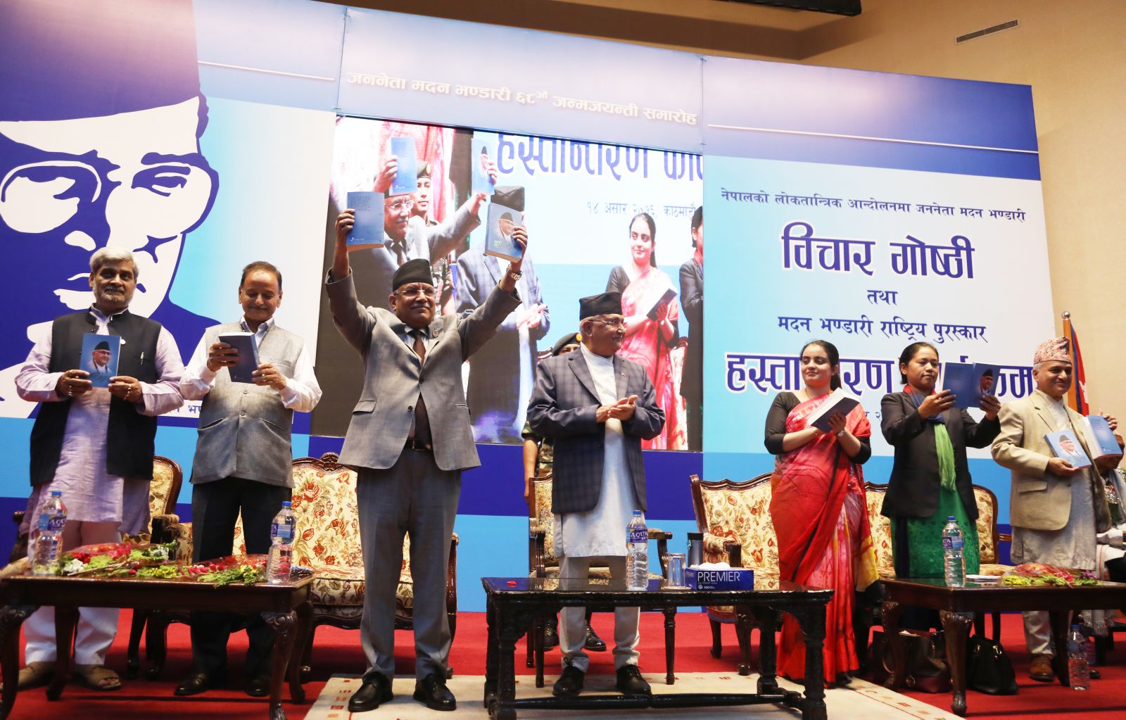 प्रधानमन्त्री ओलीले मदन भण्डारी बहुआयामिक व्यक्तित्व भएको उल्लेख गरे। मदन भण्डारीकै अगुवाइमा २०४६ सालमा नेपाली काँग्रेससँग मिलेर पञ्चायत विरुद्धको आन्दोलन सफल पारिएको प्रधानमन्त्री ओलीको भनाइ छ । “ कम्युनिष्ट काँग्रेसलाई आपसमा भिडाएर कमजोर पार्ने राणनीतिलाई मदन भण्डारी र गणेशमान सिंहको सुझबुझले तोड्यो ” उनले भने “कम्यूनिष्ट पार्टीको नेतृत्वमा मदन भण्डारी भएकै कारणले मात्र त्यो सम्भव भयो ।”अहिले नेपाल कम्यूनिष्ट पार्टी जहाँ पुगेको छ ,त्यसमा पुषपलाल र मदन भण्डारीको ठुलो योगदान रहेको प्रधानमन्त्री ओलीको भनाइ छ ।