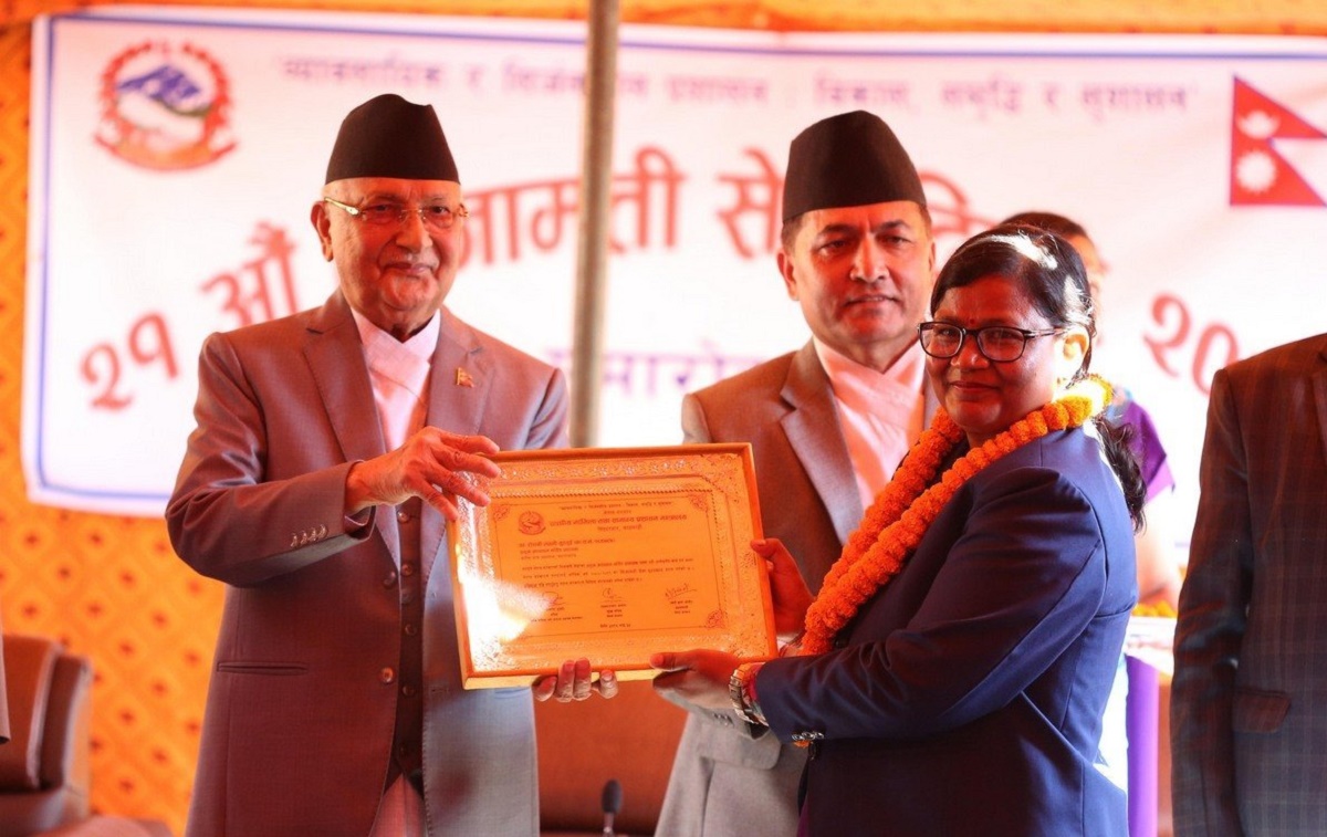 सुनकोशी मरिण डाइभर्सन बहुउद्देश्यीय आयोजनाका आयोजना निर्देशक मित्र बराल, शिक्षा विकास तथा समन्वय एकाइ धनकुटामा कार्यरुत एकाइ प्रमुख मोहन राई, कोलेनिका बर्दियाका प्रमुख कोष नियन्त्रक शिवप्रसाद चौधरी, प्रधानमन्त्री तथा मन्त्रिपरिषद् कार्यालय सिंहदरबारका उपसचिव आनन्द पौडेलाई प्रदान गरिएको छ ।