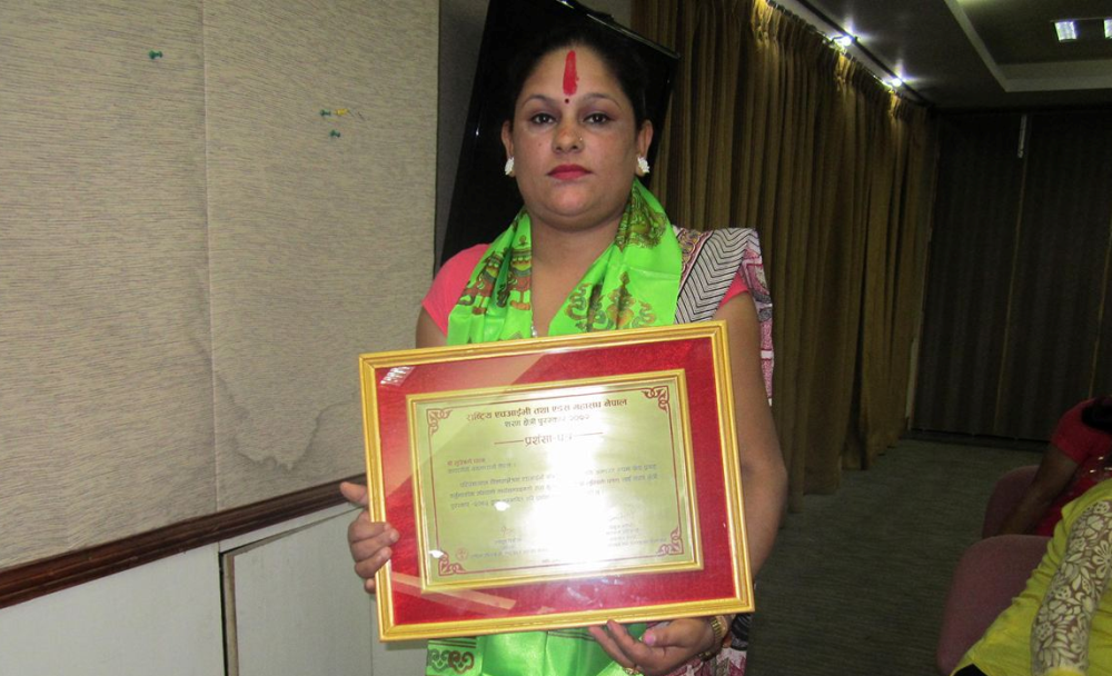 उनलाई २०७० सालमा ‘युवा नेतृत्व’ सम्मान प्रदान गरिएको थियो। पछिल्लो समय उनको कामलाई सम्मान गर्नेहरू प्रसस्त भेटिन थालेका छन्। जिल्ला विकास समिति नवलपरासीले असल काम गरेबापत २०७१ सालमा सम्मान गरेको थियो। वि.सं. २०७३ सालमा युवा तथा खेलकुद मन्त्रालयले युवा प्रतिभा सम्मानले उनलाई सम्मानित ग¥यो। पहिला हेला र दुरदुर गर्नेहरूले पनि बोलाएर अहिले गाउँठाउँमा सम्मान गर्ने गरेको उनले सुनाइन् ।