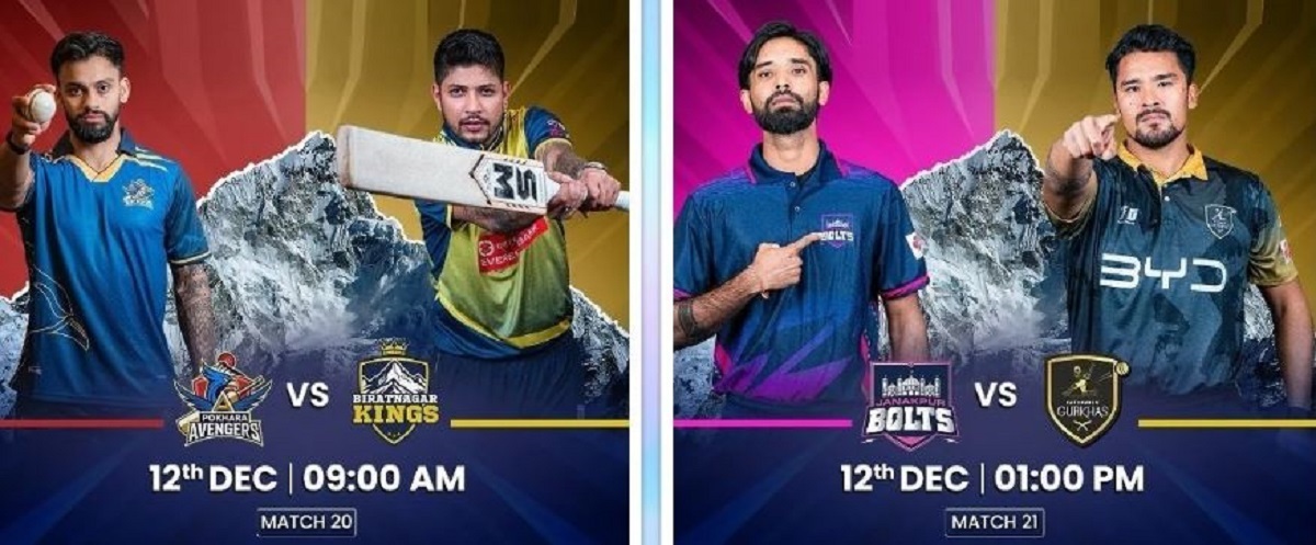 काठमाण्डु- नेपाल प्रिमियर लिग (एनपीएल)मा आज दुई वटा खेल हुँदैछन् । पहिलो खेल पोखरा एभेन्जर्स र विराटनगर किंग्स खेल्दैछन् । त्रिवि क्रिकेट मैदान कीर्तिपुरमा यो खेल बिहान ९ बजे हुनेछ । यस्तै आजको दोस्रो खेलमा दिउँसो एक बजे जनकपुर बोल्ट्स र काठमाडौं गुर्खाज खेल्दैछन् ।
