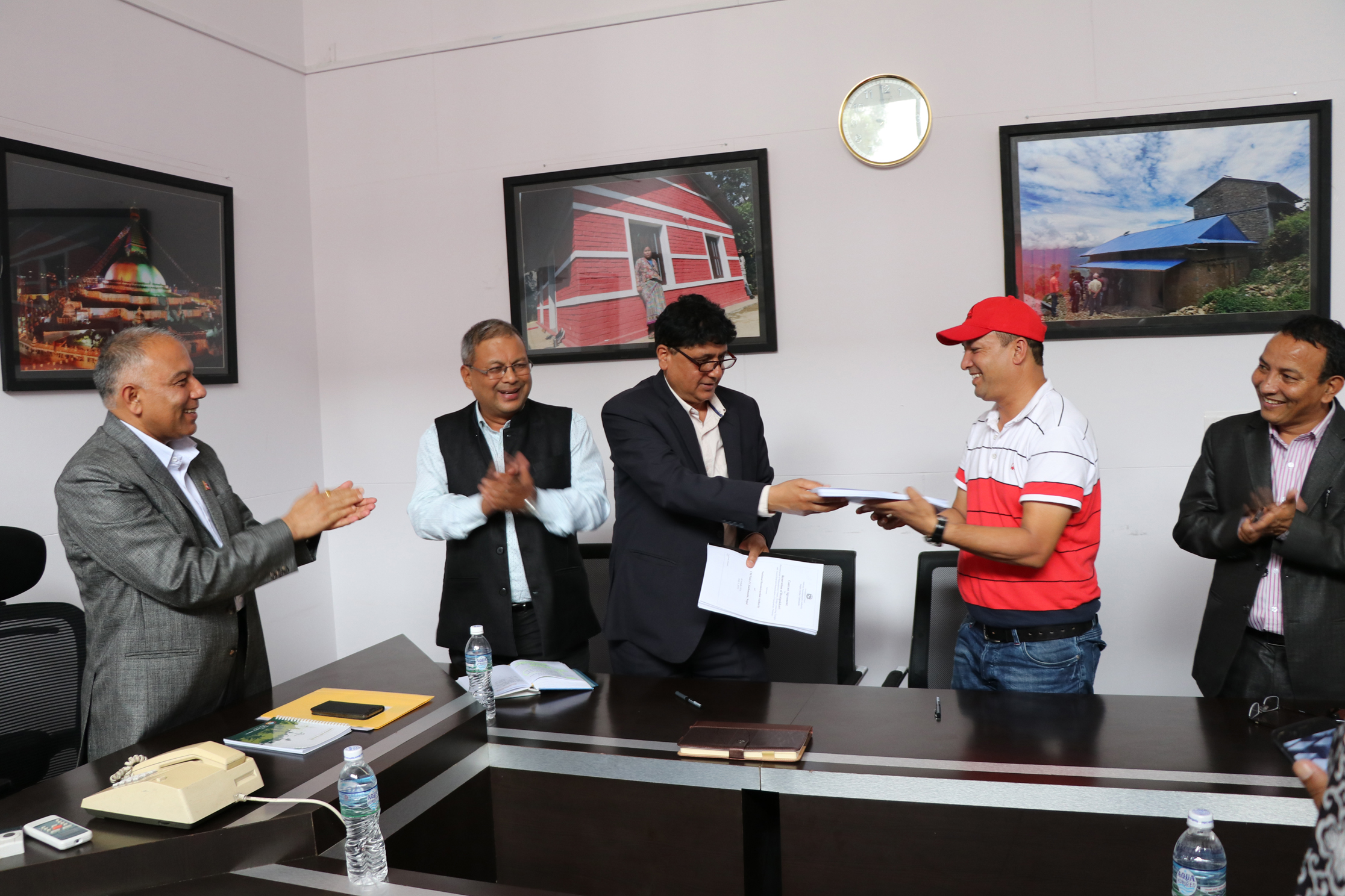 सम्झौतापत्रमा प्राधिकरणका तर्फबाट सहसचिव एवं सम्पदा संरक्षण, सार्वजनिक भवन तथा पूर्वाधार महाशाखा प्रमुख शिवहरि शर्मा र निर्माण कम्पनीका तर्फबाट शान्तकुमार श्रेष्ठले हस्ताक्षर गरे। पुनर्निर्माणका लागि सम्झौता रकम १४ करोड २७ हजार ५ सय ५७ रुपैयाँ छ ।