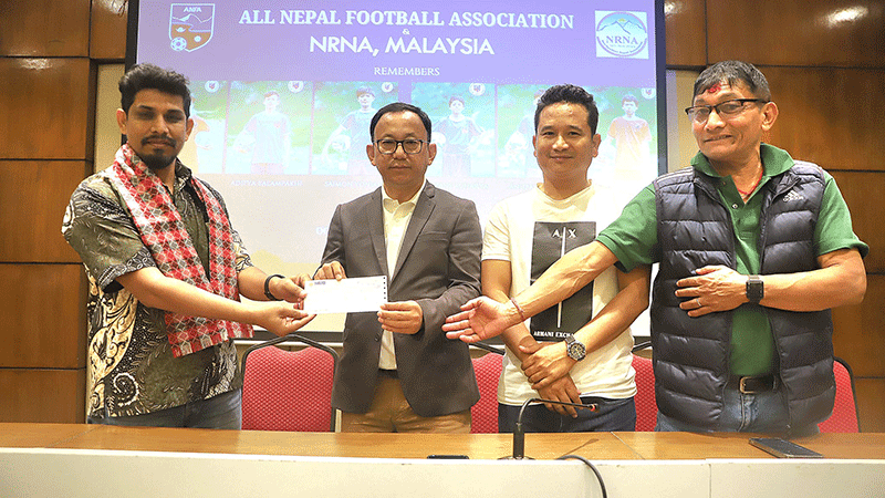 काठमाण्डु – गैरआवासीय नेपाली संघ (एनआरएनए) मलेसियाले अखिल नेपाल फूटबल संघ (एन्फा) लाई चेक हस्तान्तरण गरेको छ ।