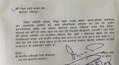 अधिकारीलाई मन्त्रालयले पठाएको पत्र