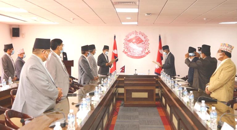 बिहीबार बिहान सिंहदरबारस्थित प्रधानमन्त्री तथा मन्त्रिपरिषदको कार्यालयमा नवनियुक्त उपाध्यक्ष विश्व पौडेल, सदस्यद्वय रामकुमार फुयाँल र दिलबहादुर लिम्बुले पद तथा गोपनियताको सपथ लिएका हुन् ।