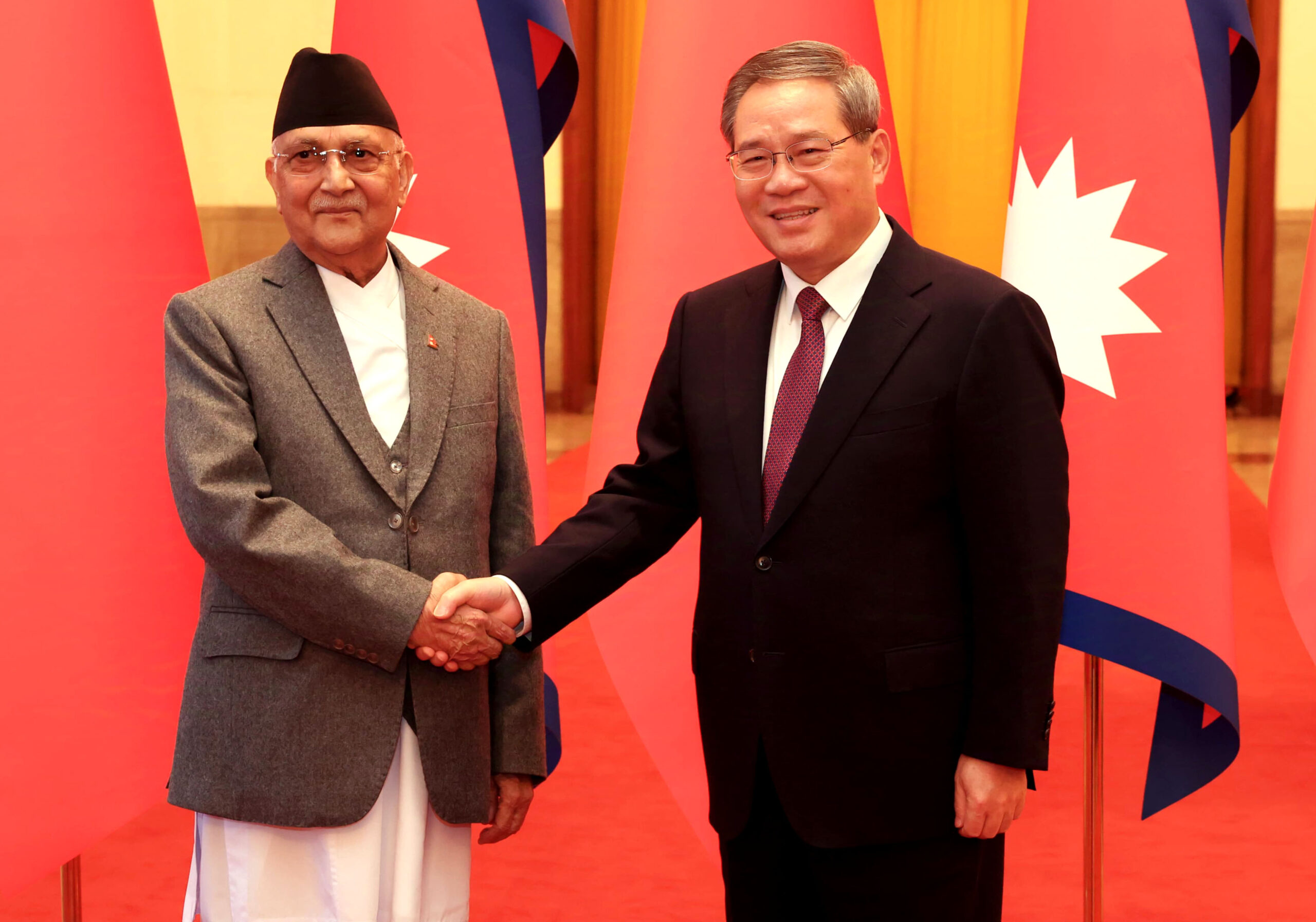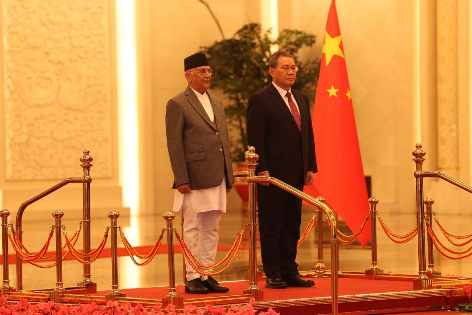 बेइजिङ– चीनको औपचारिक भ्रमणमा रहेका प्रधानमन्त्री केपी शर्मा ओलीलाई चिनियाँ समकक्षी ली छ्याङले ग्रेट हल अफ पिपलमा आज स्वागत गरेका छन्।
