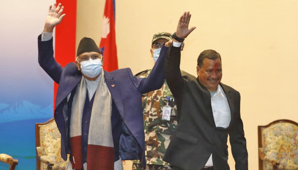 काठमाण्डु- नेकपा एमालेका अध्यक्ष केपी शर्मा ओली र नेपाल कम्युनिस्ट पार्टी नेकपाका महासचिव नेत्रविक्रम चन्द ‘विप्लव’ बीच भेटवार्ता भएको छ । सोमबार बेलुका भक्तपुरको बाल्कोटस्थित ओली निवासमा दुई नेताबीच भेटवार्ता भएको हो ।