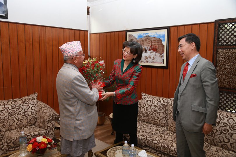 एमाले स्थायी कमिटीको बैठक सुरु हुनु अघि बालुवाटार पुगेकी चिनिया राजदूतले जन्मदिनको शुभकामना दिनुको साथै बुके हस्तान्तरण गरेर सु–स्वास्थ्य र दिर्घायुको कामना गरेकी थिईन ।