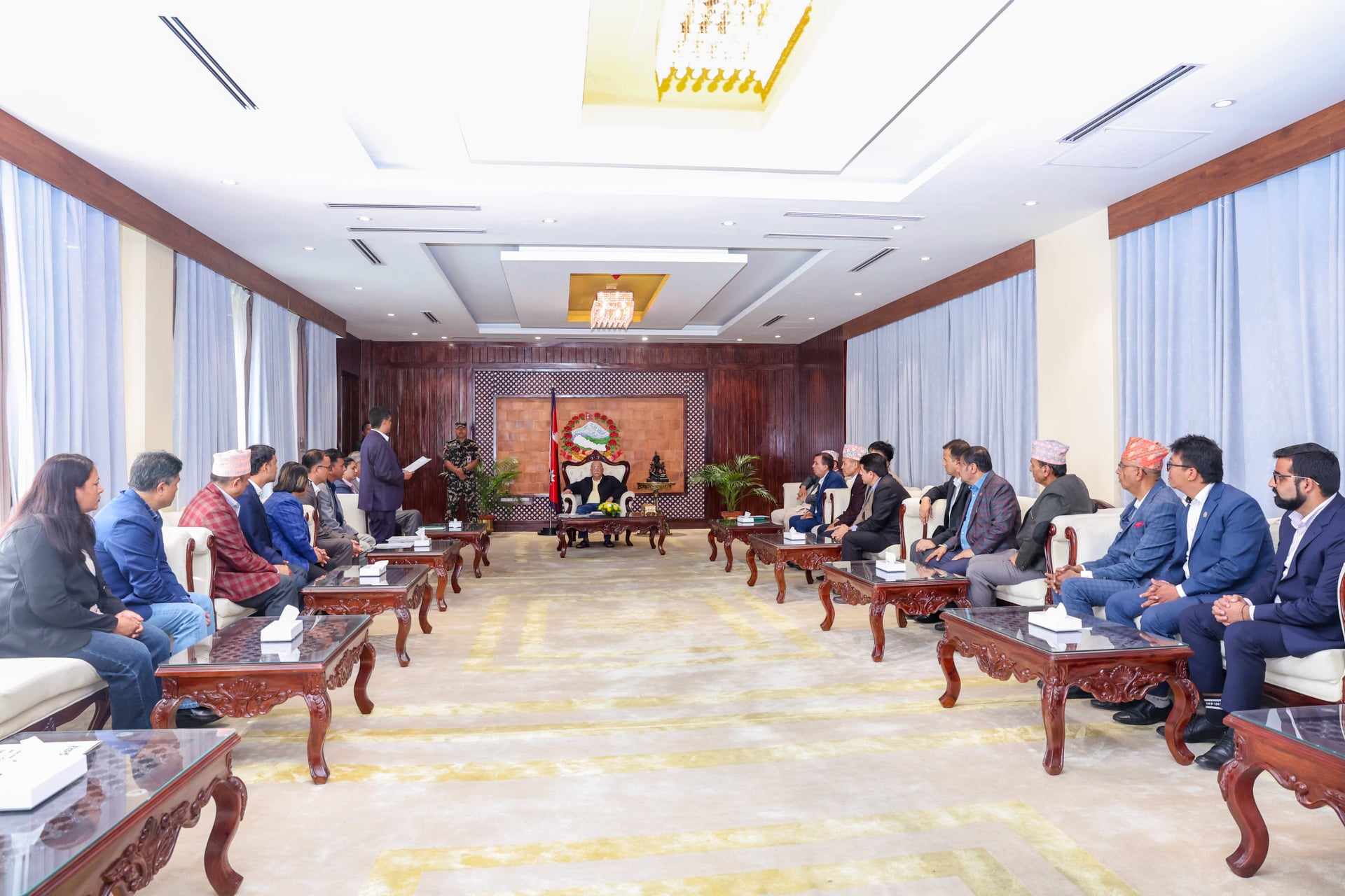 प्रधानमन्त्री एवं नेकपा (एमाले)का अध्यक्ष ओलीलाई आज प्रधानमन्त्री निवास, बालुवाटारमा भेटेर एमालेको जनसङ्गठन रहेको महासङ्घका संयोजक भगीरथ सापकोटासहितको प्रतिनिधिमण्डलले ‘सुदृढ अर्थतन्त्र निर्माणको आधारः सबल निजी क्षेत्र र बलियो पूर्वाधार’ को लक्ष्य लिइएको सुझावपत्र बुझाएको हो ।
