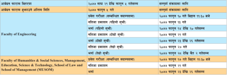 विश्वविद्यालयले प्रवेश परीक्षा र भर्ना सम्बन्धी विस्तृत विवरण सार्वजनिक गरेको छ भने भर्ना प्रवेश परिक्षाका लागि आवेदन खुल्ला गरेको छ ।