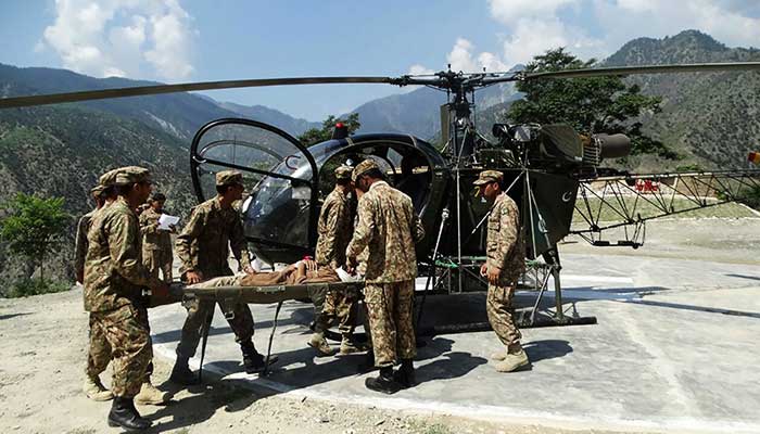 बाल्टिस्तान क्षेत्रमा गोली लागेर घाइते भएका एक सिपाहीको उद्धारका लागि खटिएको हेलिकप्टर दुर्घटनाग्रस्त भएको हो ।