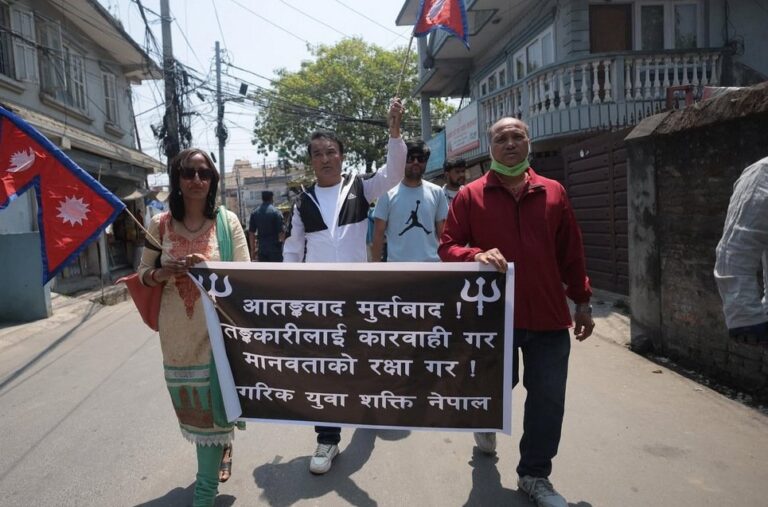 पहलगाम आक्रमणमा पाकिस्तानको हात रहेको भारतको आरोप सही रहेको भन्दै नागरिक युवा शक्ति नेपालको नाममा ब्यानर र प्लेकार्डसहित प्रदर्शन भएको हो ।
