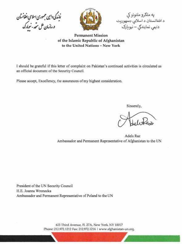 अफगानिस्तान सरकारले पाकिस्तानी सेनाको उल्लङ्घनको कडा निन्दा गर्दै उत्तेजक एवं गैरकानूनी गतिविधिविरुद्ध आवश्यक कदम चाल्न आह्वान गरेको संयुक्त राष्ट्रसंघ सुरक्षा परिषदलाई गत साता लेखेको पत्रमा उल्लेख छ ।