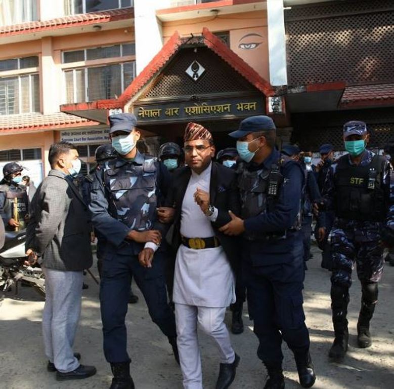 प्रधानन्यायाधीश चोलेन्द्र शमशेर राणाको राजीनामा माग गर्दै आन्दोलनमा उत्रिएको नेपाल बार एसोसियसन विरुद्ध अनसन बस्न बार परिसरमा पुगेका अधिवक्ता स्वागत नेपालसहित चार जनालाई प्रहरीले पक्राउ गरेको हो ।