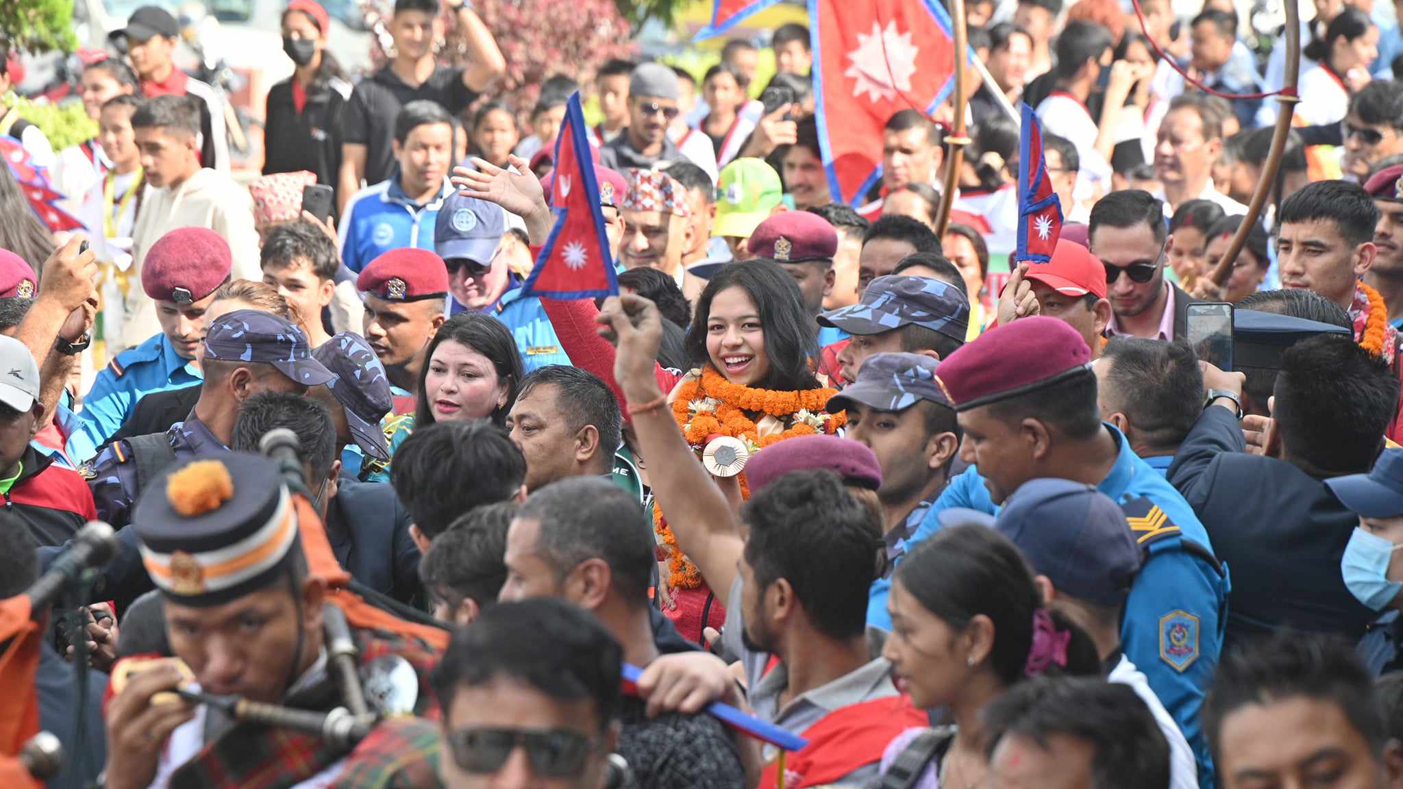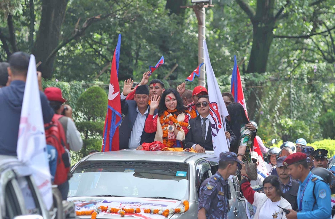 काठमाण्डु-पेरिस पारालिम्पिककी ऐतिहासिक पदक विजेता तेक्वान्दो खेलाडी पलेसा गोवर्धनलाई नगर परिक्रमा गराएर सम्मान गरिएको छ ।