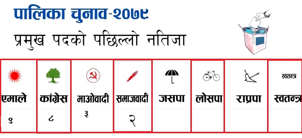 २२ पालिकाको नतिजा : एमाले ९, कांग्रेस ८ (सूचीसहित)