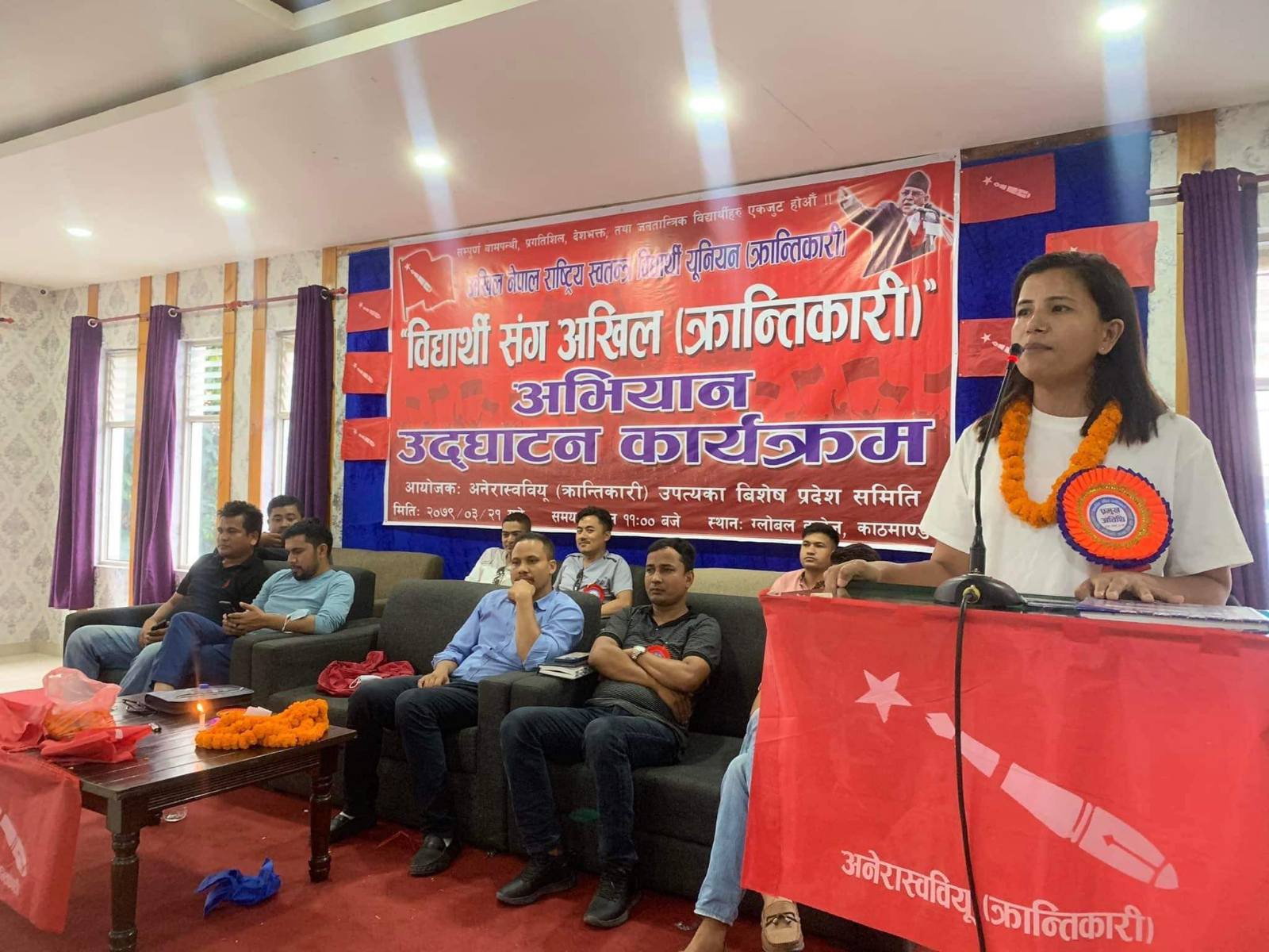 अखिल (क्रातिकारी)को तिन महिने अभियान विद्यार्थीसँग अखिल(क्रान्तिकारी)’ को आज काठमाण्डुमा आयोजित उद्घाटन कार्यक्रमलाई सम्बोधन गर्दै सिंहले यस्तो बताएकी हुन् ।