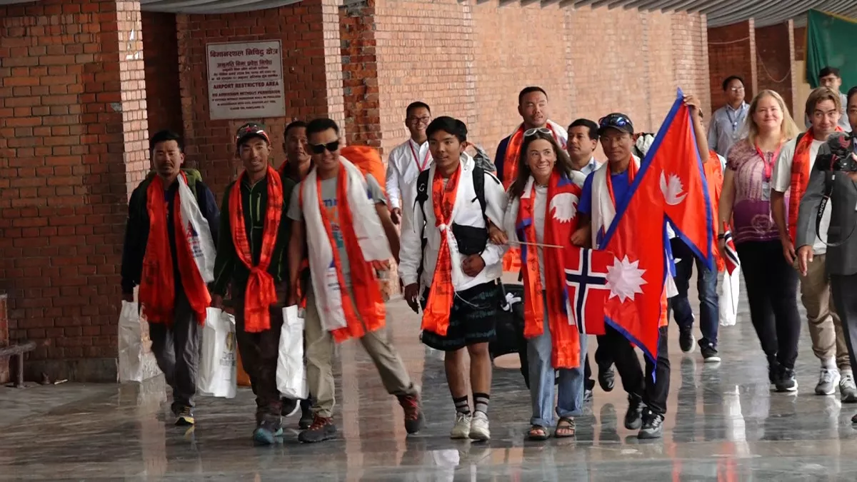 काठमाण्डु- तीन महिनामा १४ हिमाल आरोहण गरी विश्वकीर्तिमान कायम गरेका दुई जना पर्वतारोहीलाई स्वागत गरिएको छ । शनिवार नर्वेकी आरोही क्रिस्टिन हरिला र नेपाली गाइड तेन्जेन ९लामा० लाई त्रिभुवन अन्तर्राष्ट्रिय विमानस्थलमा स्वागत गरिएको हो ।