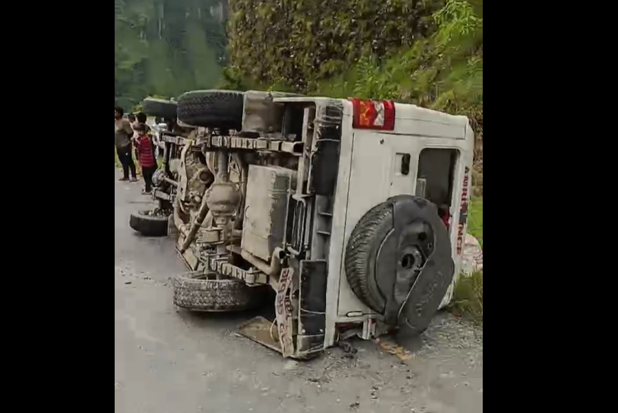पर्वत– पर्वतमा बिरामी बोकेको एम्बुलेन्स दुर्घटना हुँदा ३ जना घाइते भएका छन् ।