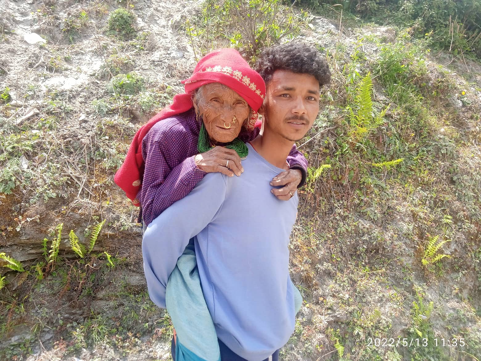 नातिको पिठ्यूँ चढेर मतदानस्थल पुगेकी ९० वर्षीया पार्वती