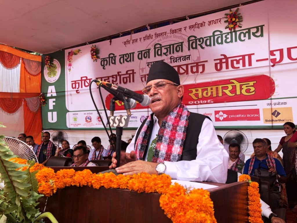 चितवन – नेकपाका अध्यक्ष पुष्पकमल दाहाल प्रचण्डले कृषिमा आधारित अर्थतन्त्र र उद्योगबाट मात्रै आर्थिक समृद्धिको नयाँ युगको सूत्रपात हुने बताएका छन्। कृषि तथा वन विज्ञान विश्वविद्यालयले रामपुर चितवनमा आयोजना गरेको कृषि मेलाको शनिबार उद्घाटन गर्दै अध्यक्ष प्रचण्डले भने, यस्तो बताएका हुन् ।