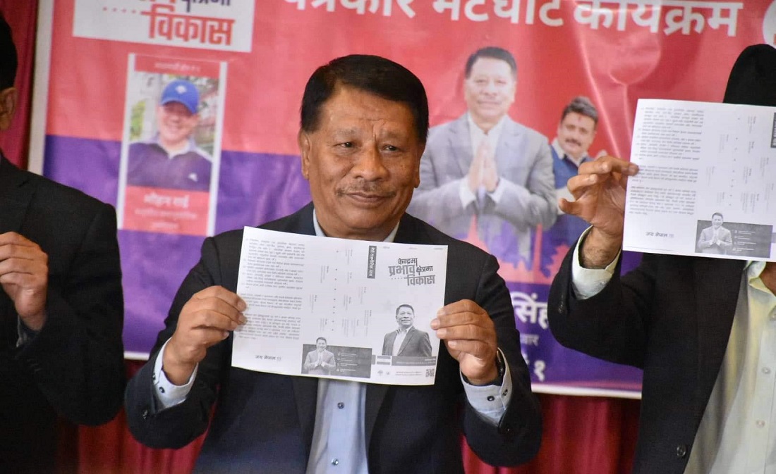 काठमाण्डु – नेपाली कांग्रेसका नेता एवं काठमाण्डु १ बाट सत्ता गठबन्धनका उम्मेदवार प्रकाशमान सिंहले चुनावी प्रतिबद्धता पत्र सार्वजनिक गरेका छन् । सोमबार बबरमहलस्थित कार्की ब्यांक्वेटमा आयोजित पत्रकार सम्मेलनमा सिंहले प्रतिबद्धता पत्र सार्वजनिक गरेका हुन् ।