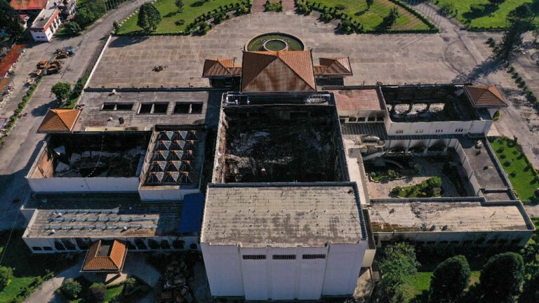 काठमाण्डु – नयाँ बानेश्वरस्थित संसद् भवन खण्डहरमा परिणत भएको छ । गत भाद्र २३ र २४ गतेको जेनजी आन्दोलनमा