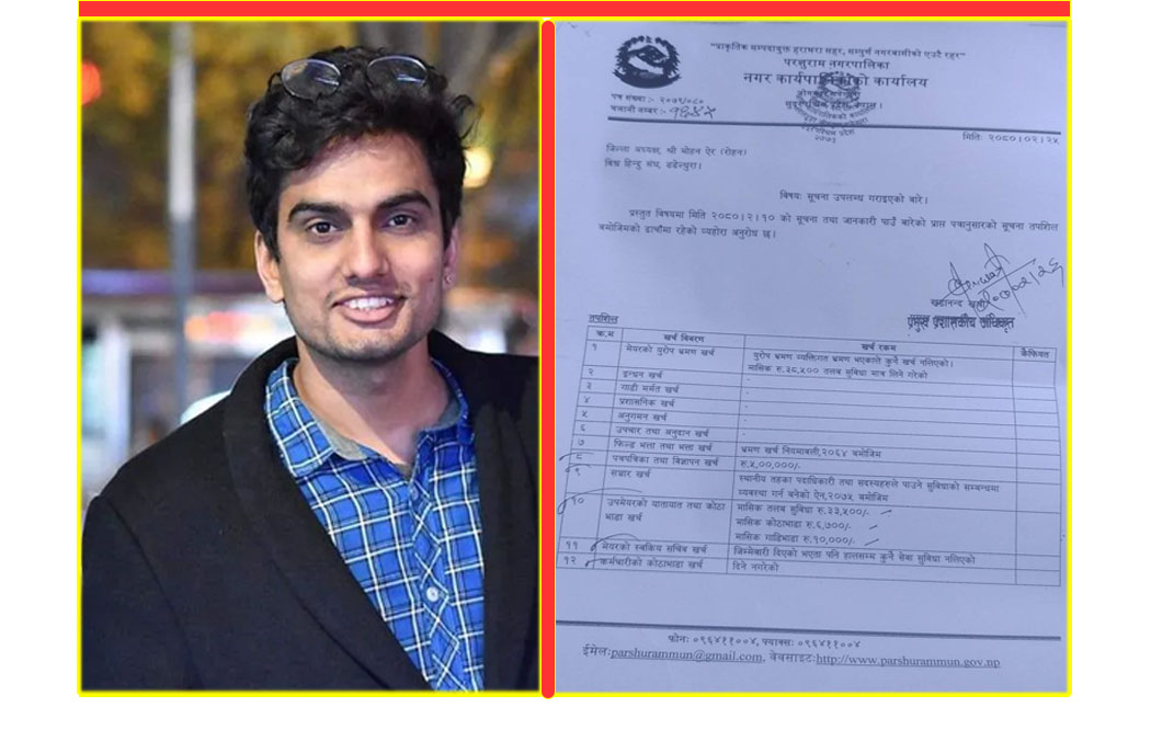 ‘मेयर ज्युको एक वर्षको कार्यकालमा भएको खर्चको विवरण हेर्दा खर्च विवरण झुटो दिएको स्पष्ट देखिन्छ । नगर प्रमुख र उप प्रमुखको स्वकिय सचिव छन् । तर, तलब भत्ता नलिने गरेको जानकारी दिइएको छ । के यो साँचो होला ? कतापी पनि हुन सक्दैन । अर्को कुरा उपमेयर ज्युको मात्र कोठा भाडा लिएको पाइयो । अरु कोहिँ नलिदा रहेछन् ? अनि उपमेयर ज्यु त करिब सात हजार सम्मको कोठाभाडामा बस्दा रहेछन् । जोगबुढामा ३५०० सयमा कोठा पाइन्छन् । त्यो भन्दा माथि त यताको बजार अनुसार काेठा छैनन् । तर, त्यत्रो महंगो कोठामा बस्नुहुँदो रहेछ उपमेयर ज्यु, अचम्म लाग्यो । इन्धन खर्च, गाडी मर्मत खर्च, अनुगमन खर्च, उपचार तथा अनुदान खर्च एक वर्षमा कति भयो भन्ने बारे किन जानकारी दिन नसकेको नगरपालिकाले ? खर्च विवरण लुकाउनुपर्ने कारण के हो? ’, रोहन ऐरले प्रश्न गर्दै भने ।