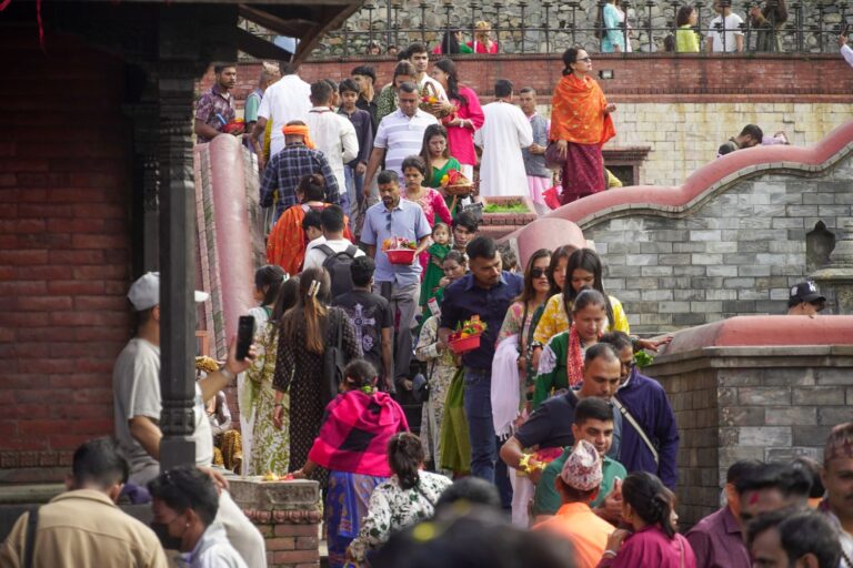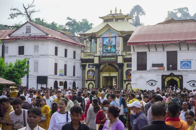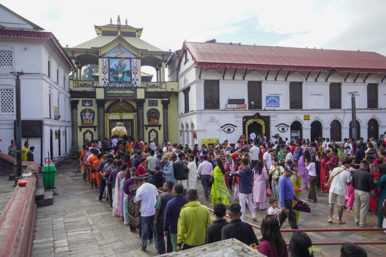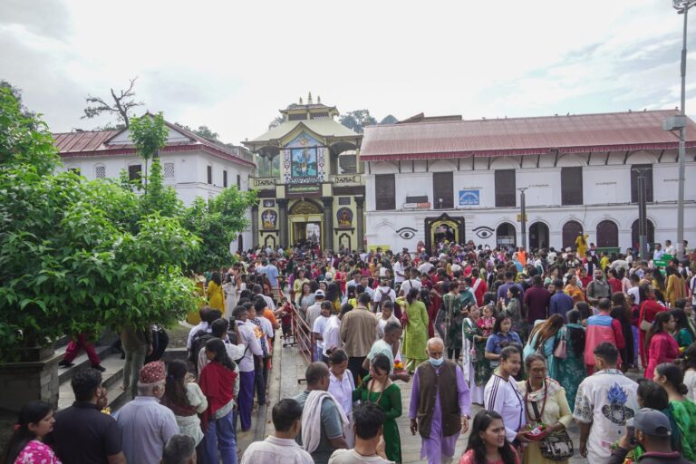 काठमाण्डु– आज साउने सङ्क्रान्तिको अवसरमा काठमाण्डुको पशुपतिनाथ मन्दिरमा भक्तजनको बिहानबाटै भिड लागेको छ।साउन महिनाभर देशभरका शिवालयसहित पशुपतिनाथ मन्दिरमा भक्तजनको विशेष पूजाआजा हुने गर्दछ।