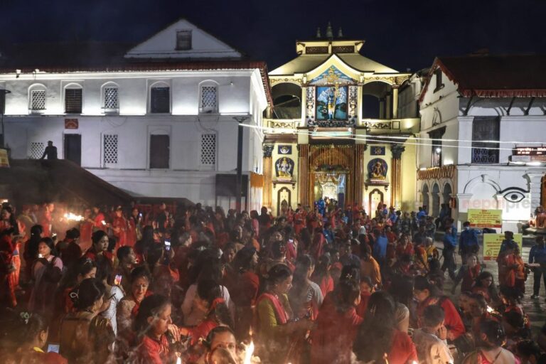 काठमाण्डु – हरितालिका तीज पर्वमा पशुपतिनाथको दर्शन गर्न आउने भक्तजनका लागि मूल मन्दिरका ४ वटै ढोका बिहान ३ बजेदेखि खोलिएको छ ।