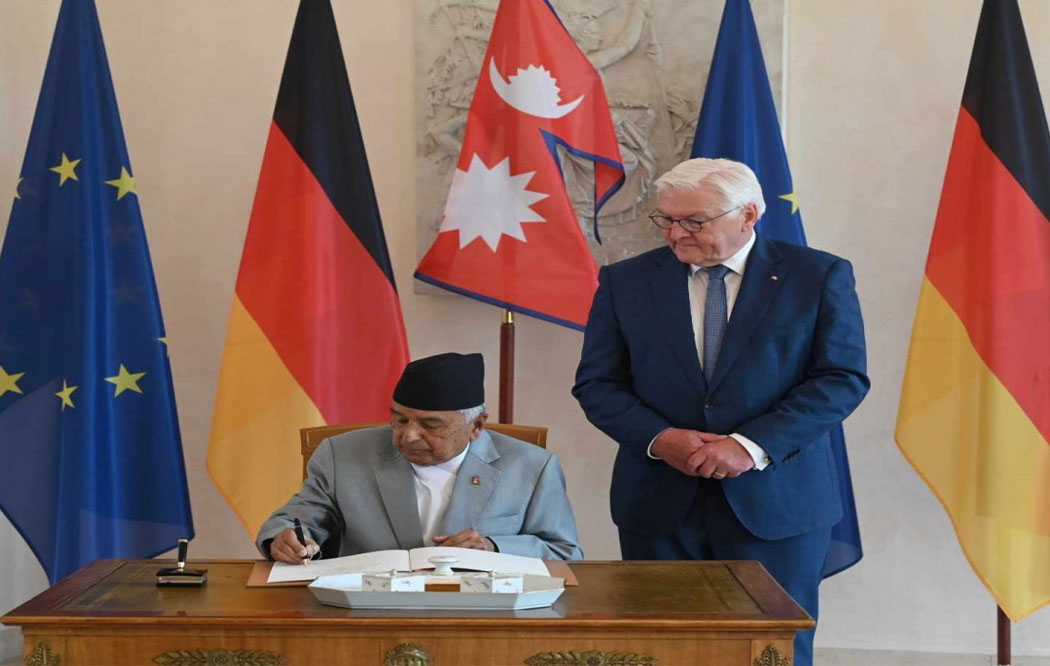 जर्मनी पुगेका राष्ट्रपति पौडेल र जर्मनीका राष्ट्रपति स्टाइनमायरबीच वर्लिनमा आज भेटवार्ता भएको हो । भेटवार्ताका अवसरमा राष्ट्रपति पौडेलले नेपालले जर्मनीसँगको सम्बन्धलाई सदैव उच्च महत्व दिएको र बदलिँदो विश्व परिवेशमा यो सम्बन्ध अझ घनिष्ठ हुने विश्वास व्यक्त गर्दै सोसीयलिष्ट इन्टरनेशनल तथा प्रोग्रेसीभ एलायन्स जस्ता संस्थाहरु सामाजिक न्याय, मानव अधिकार, लोकतन्त्र, कानूनी राज्य तथा स्वतन्त्रतालगायतका लागि विश्वस्तरमा अझ क्रियाशील रहनुपर्छ भन्ने आफूलाई लागेको बताएका थिए ।