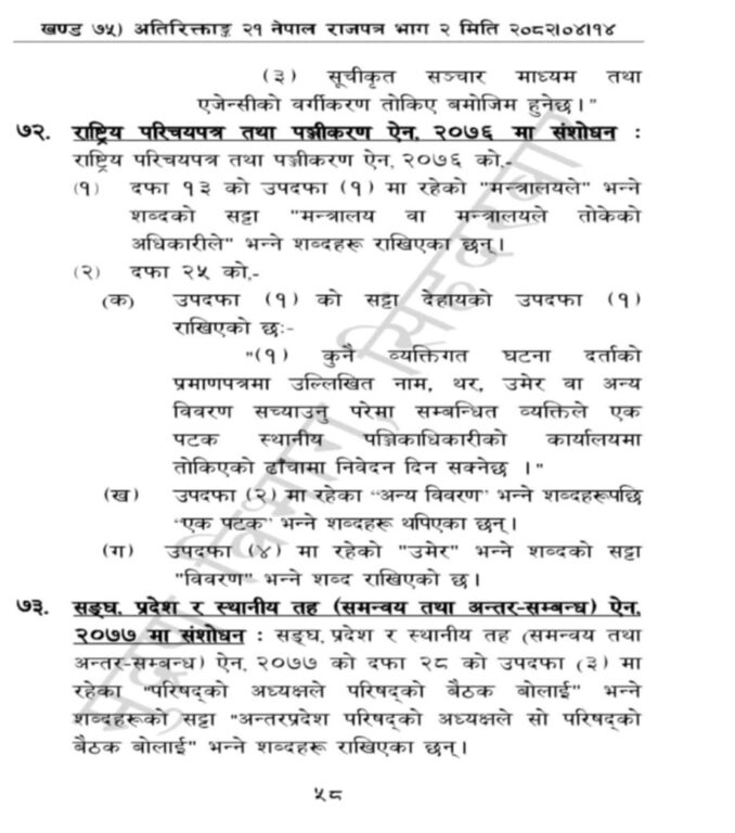 सरकारले केही नेपाल ऐन संशोधनमार्फत राष्ट्रिय परिचयपत्र तथा पञ्जीकरण ऐन, २०७६ संशोधन गर्दै यस्तो व्यवस्था गरेको हो ।