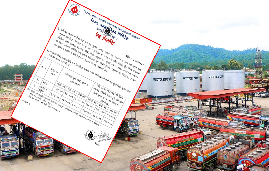 काठमाण्डु- पेट्रोलियम पदार्थको मूल्य बढेको छ । नेपाल आयल निगमले पेट्रोलको मूल्यमा प्रतिलिटर ४ र डिजेलको प्रतिलिटर ३ रुपैयाँ बढाएको हो ।