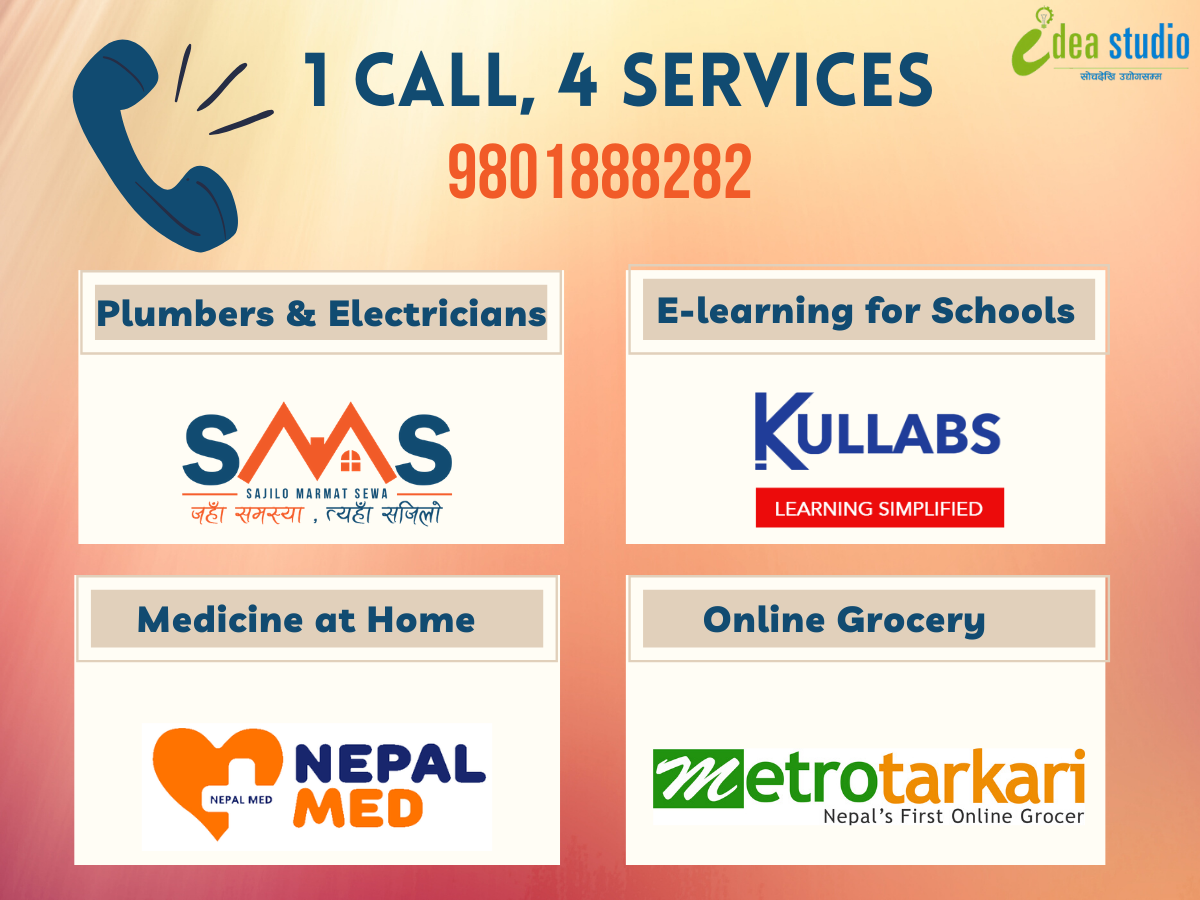 आइडिया स्टुडियोले नेतृत्व लियो । यसमा ४ वटै कम्पनी तयार भए । एउटा नम्बरमा फोन गरेपछि आफूलाई चाहिने सामग्री घरमै आइपुग्ने गरी काम अगाडि बढ्यो । जसलाई ‘वान कल ४ सर्भिसेज’ भनिएको छ । अहिले लकडाउनको सययमा उपभोक्तालाई सहज भएको छ ।