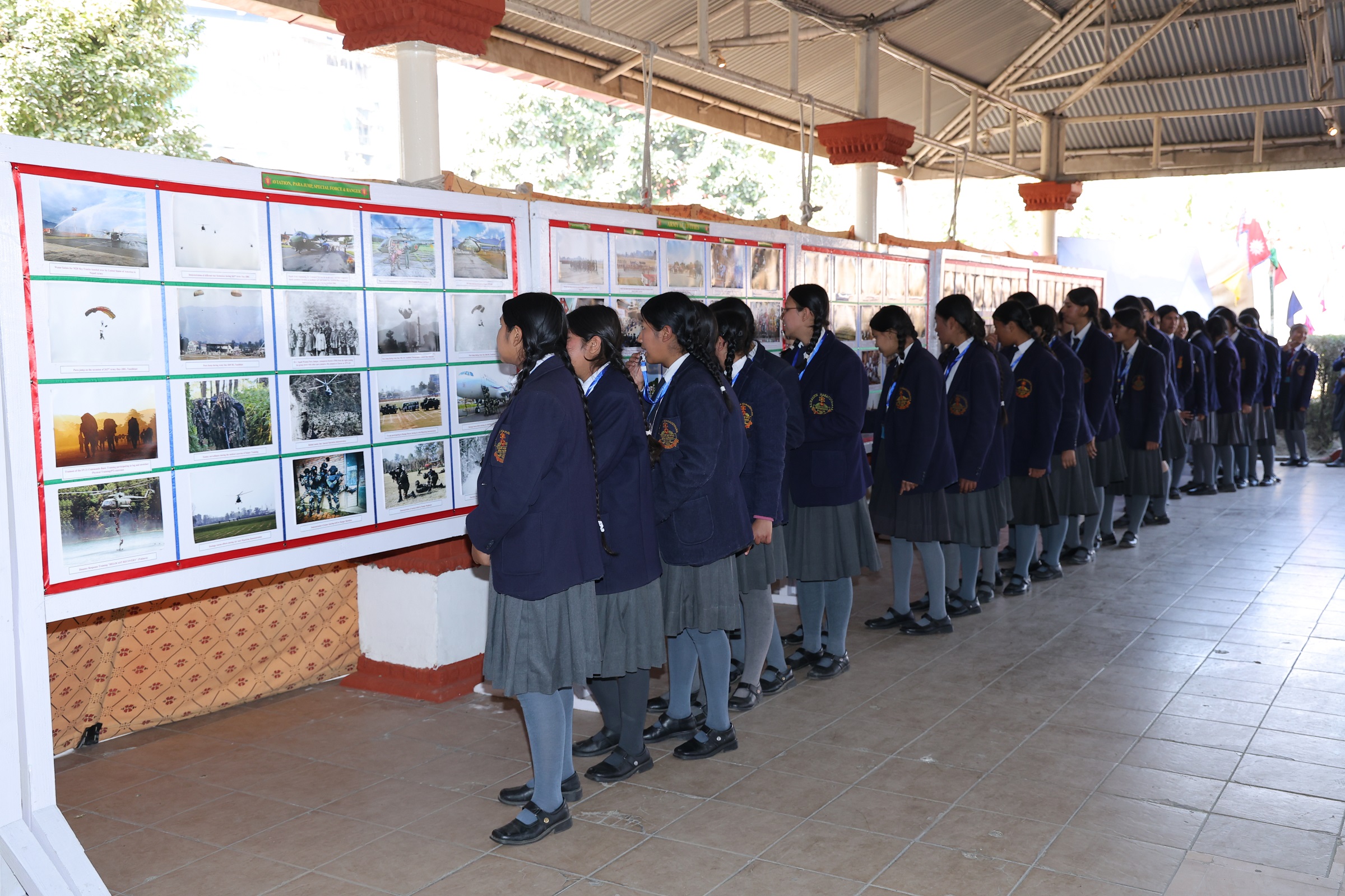 प्रदर्शनीमा सैनिक विद्यालयहरू र राष्ट्रिय सेवा दलका गतिविधिहरूलाई समेत प्राथमिकताका साथ समेटिएको थियो ।