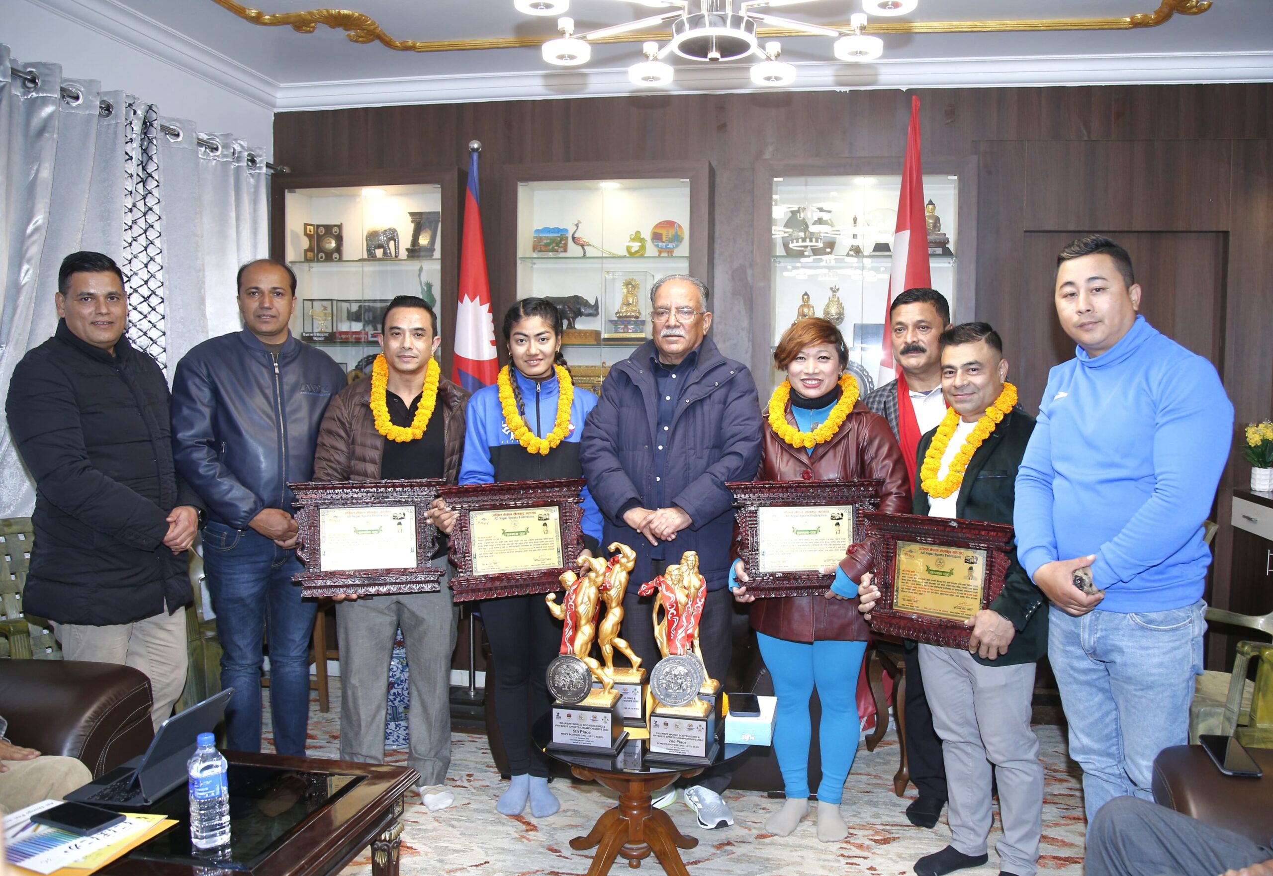अखिल नेपाल खेलकुद महासंघको आयोजनामा आईतबार अध्यक्ष प्रचण्ड निवास खुमलटारमा भएको कार्यक्रममा उनले सम्मान गरे ।