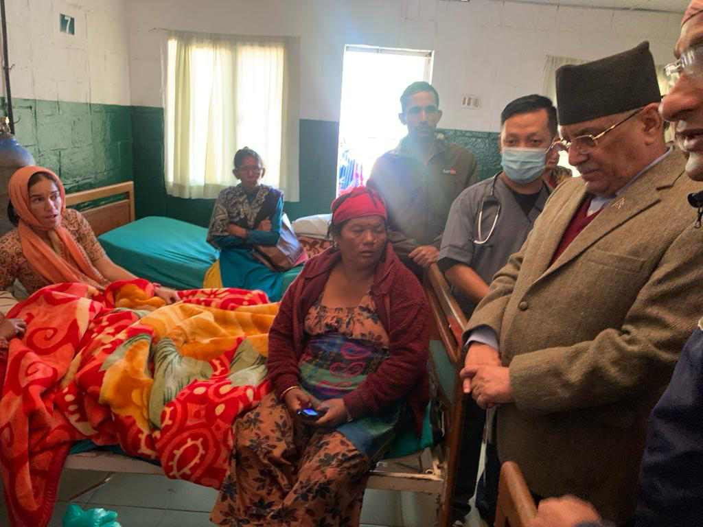 काठमाण्डु- प्रधानमन्त्री पुष्पकमल दाहाल ‘प्रचण्ड’ले रुकुमको सानीभेरी अस्पताल पुगेर घाइतेहरुको स्थितिबारे जानकारी लिएका छन् । शनिबार बिहानै भूकम्पको केन्द्रबिन्दु रहेको जाजरकोट पुगेका प्रधानमन्त्री त्यहाँबाट रुकुम पश्चिम पुगेका हुन् ।